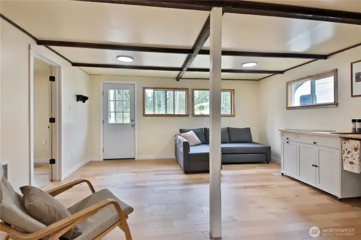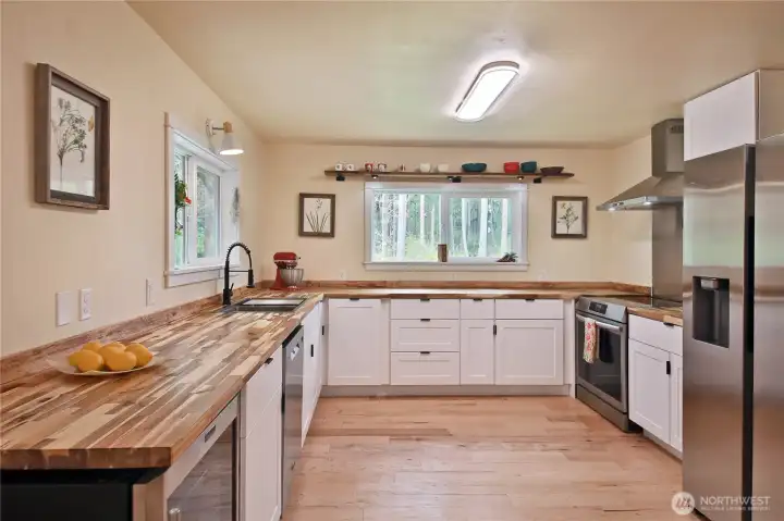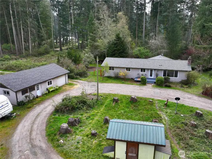 Nature Lane—just as lovely as it sounds. Tucked down a private drive and surrounded by towering cedars and evergreens, where owls and eagles make their home, this serene and level five-acre property offers space, privacy, and opportunity. Whether you envision a mini farm, a home-based business, or simply room to pursue your hobbies, this property is ready to bring your vision to life. Located minutes from the historic town of Coupeville, you’ll enjoy easy access to local shops, restaurants, parks, and medical services. The Coupeville Ferry is also a short jaunt away, making spontaneous day trips to Port Townsend both simple and inviting. The main residence features three bedrooms, 1.75 baths, an open-concept kitchen with adjoining dining space, and two generous living areas, ideal for both everyday comfort and entertaining. Thoughtful updates include new roof, paint, engineered hickory hardwood floors, windows, decks, appliances, and fixtures, which all create a seamless, move-in-ready experience. A detached ADU of approximately 660 square feet has also been tastefully refreshed, offering two flexible rooms, a bathroom, and a kitchenette, perfect for guests, rental income, or extended living arrangements. In addition, two oversized shops—each with power, large doors, and lofted storage—provide exceptional space for projects, or creative pursuits. There’s truly no shortage of room here. With everything in place, all that’s left is to shape the land to your needs!