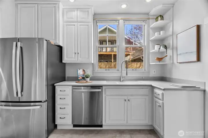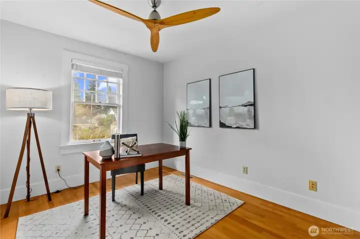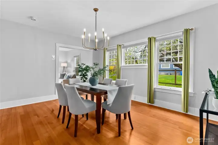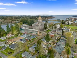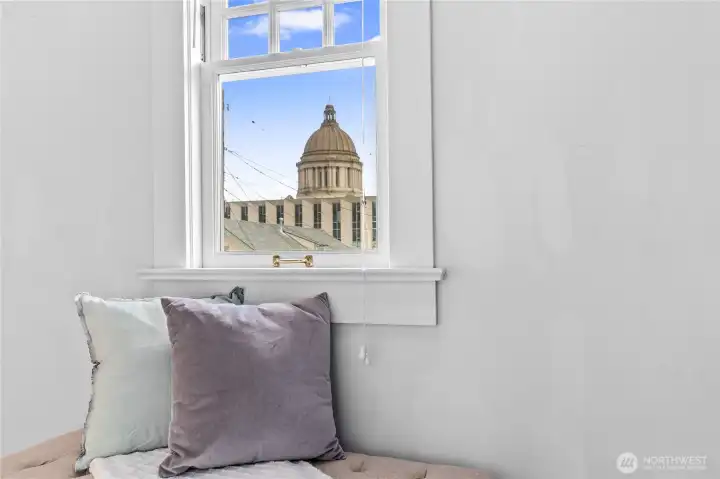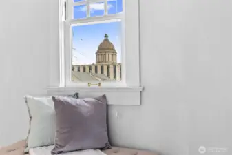 This charming vintage 4+ bedroom home in the highly sought-after Historic South Capitol neighborhood is just moments from the Capitol Campus, and something really special! You get the best of location, charm and character, plus everyday functionality all in one place- AND a stunning view of the Capitol Dome! Flexible living spaces, with lots of fun nooks, including a sunny living room, huge formal dining room; an eat-in kitchen that offers generous storage and great light. The gas fireplace adds warmth and comfort to the living room, while the inviting covered front porch is perfect for relaxed mornings with your coffee. An attached 2 car garage plus 2 additional off-alley parking spaces and ample street parking is a rare find in this area. Step outside and enjoy established landscaping featuring fruit tress, and a great patio sitting area in the fenced yard. This home offers classic charm, usable and flexible spaces, and an unbeatable location a stones throw to the Capitol Campus, downtown Olympia, parks, restaurants and all the amenities.