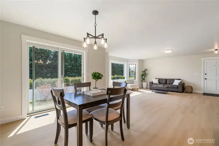 Beautifully remodeled 2+ bedroom, 2 bath condo offering 1,749 sq. ft. of single-level living that feels like a standalone home. Features include an attached 2-car garage, private patio with territorial views, and a spacious open-concept layout. Enjoy a stunning new kitchen with quartz countertops, stainless appliances, and eat-in peninsula. All-new LVP flooring, carpet, and coordinated LED lighting throughout. The primary suite impresses with a large walk-in closet, dual vanity, and custom tile tub surround. Versatile den/office could serve as a 3rd bedroom. Prime Lynden location near schools and Edaleen—exceptional value! Lender credit up to $10,000 for using preferred lender!