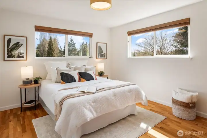 This one really does check all the boxes! Tucked in on a quiet tree-lined cul-de-sac in Highland Park, this beautifully updated home blends warmth, character and flexibility in all the right ways. Come through the fully fenced yard into a welcoming living room with hardwood floors and a striking natural stone gas fireplace. Thoughtful updates throughout highlight the home’s original charm, including gorgeous wood cabinetry. The kitchen offers new appliances, eating space, connects to the formal dining room, and opens to the back deck through an adorable Dutch door. The main level features 3 spacious bedrooms and a full bath with double sinks. Central vacuum, too. The daylight lower level adds a large second living area, ¾ bath with w/d hookups, and a flexible bonus room with two closets—perfect for a home gym, office, studio, media room, or extra storage. Attached deep 536 sf 2-car garage has a half bath, utility sink and washer/dryer. Level fenced backyard with gated alley access and parking pad. Quiet, non-through street in a location that makes getting anywhere from West Seattle refreshingly easy. Lovingly cared for and ready for its next chapter.
