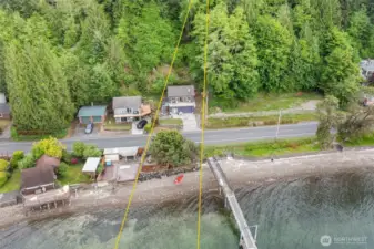 Welcome to your private Hood Canal sanctuary, where 50 feet of low-bank waterfront, owned tidelands, and breathtaking Olympic Mountain views set the stage for an extraordinary coastal lifestyle. Nestled along the coveted South Shore, this custom-crafted home offers a rare blend of comfort, design, and natural beauty. The upper level is designed to impress, with vaulted ceilings, designer wallpaper, and an open-concept layout that captures stunning views from the living room, kitchen, and dining area. Step out onto the expansive deck to enjoy fresh salt air, passing boats, and unforgettable sunsets. A cozy bedroom and ¾ bath complete this level. On the main floor, a spacious flex room offers versatility for guests, additional sleeping area, a media retreat, or private office, complemented by a full bath and generous storage. An oversized garage and ample driveway parking provide both convenience and functionality. Outdoors, the fully fenced waterside setting features multiple patios and direct, easy access to your private beach. Enjoy kayaking, shellfish harvesting, or sunsets evenings by the fire as the canal glows.