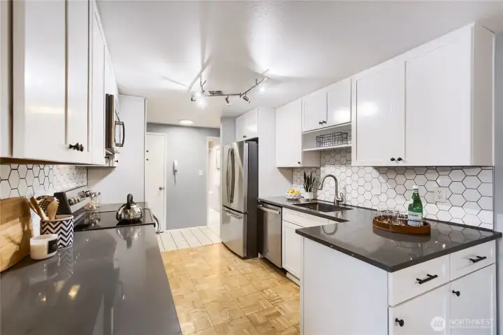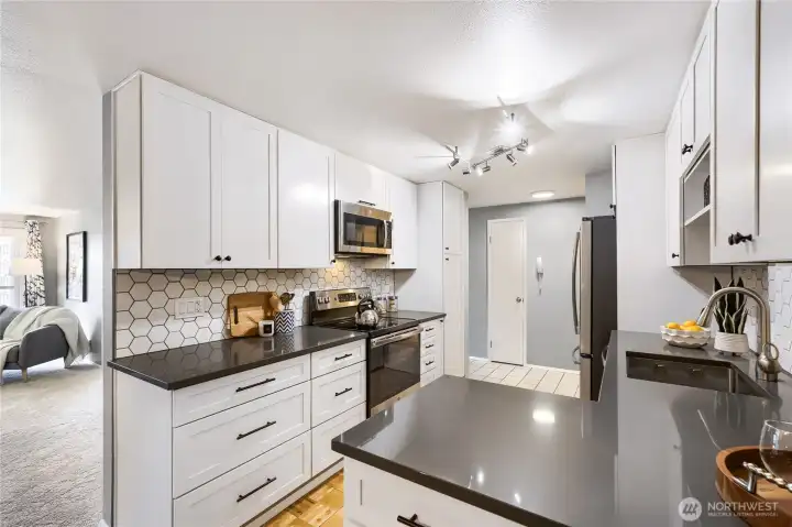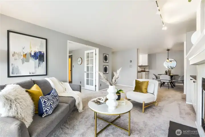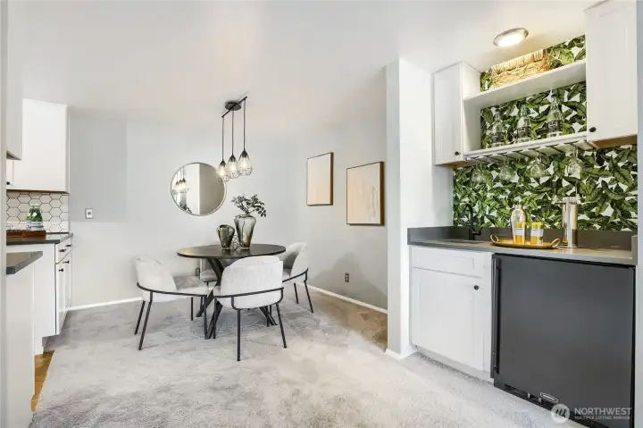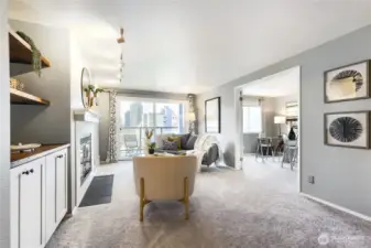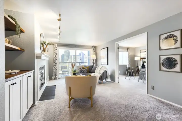 Feel the pulse & energy of the city from this fabulous urban landing pad in Capitol Hill! Everything you love about vibrant city living is at your doorstep: top-rated restaurants, fantastic nightlife, grocery options, scenic parks, community events & endless transit options. You'll love being so connected to everything! This bright third floor unit lives large & makes the most of every sqft, w/ thoughtful updates at every turn: fresh interior paint, new carpet, stylish wallpaper accents, chic lighting, & more. Become the host with the most & invite your whole friend circle over - you'll love to gather in the bright open living room looking out to city views, flowing easily into the dining area w/ a wet bar & kegerator, then into the sleek updated kitchen, equipped w/ stainless appliances, hex tile backsplash & updated counters/cabinetry. Both bedrooms are bright & airy w/ California closets to store all your gear. West-facing covered balcony looks out to twinkling city lights & gorgeous sunsets. In-unit laundry, dedicated garage parking + no rental cap = versatility, longevity & value. Tucked away on a quiet street, yet walkable to all the fun so you never miss a moment. Live your best life with downtown's best as your backdrop!