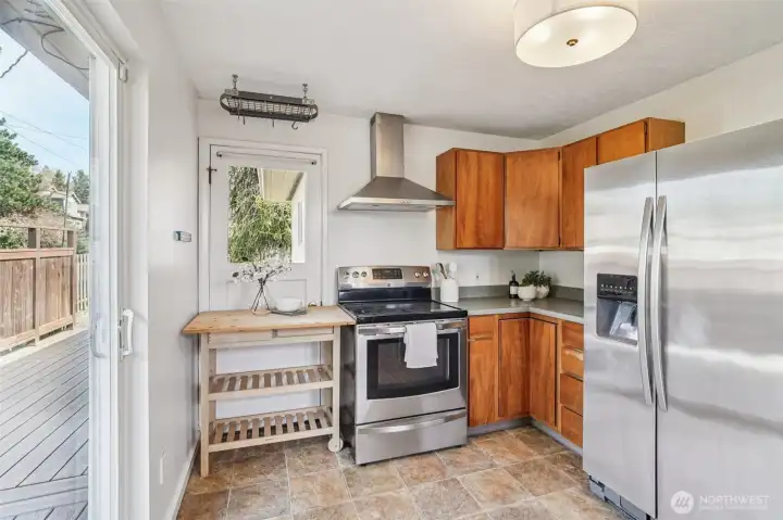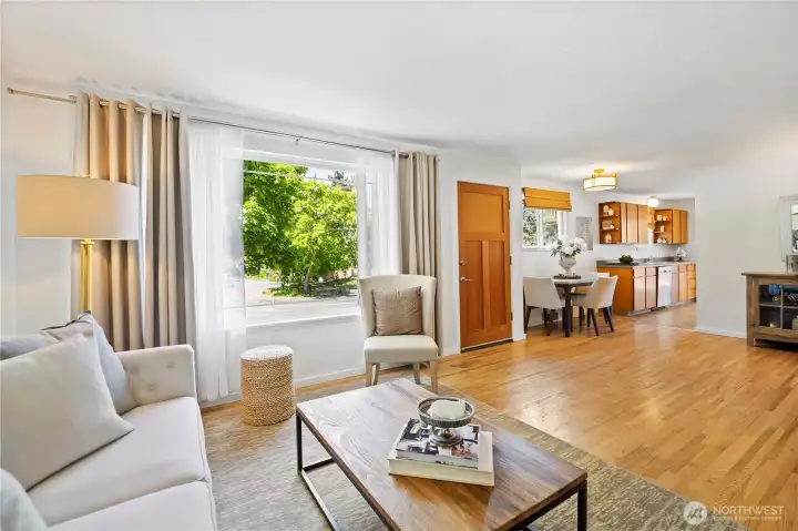 Charming Richmond Beach home with abundant light and classic details. The inviting living room features oak floors, a large picture window, and a wood-burning fireplace. Kitchen offers stainless appliances, generous counter and storage space, and glass sliders to a large entertainment deck. Three bedrooms and a full bath are on the main level. The finished basement provides flexible space for an office, media room, or play area, includes a second wood fireplace, a half bath (easy to convert to a full), plus plentiful finished storage and garage. Generous yard perfect for gardening, pets, or outdoor entertaining. Corner lot with ample parking beyond the garage. Enjoy easy access to Richmond Beach Saltwater Park, scenic Puget Sound views and waterfront trails, neighborhood coffee shops and restaurants, and convenient commuter routes to Seattle — a friendly coastal community with excellent recreational options.