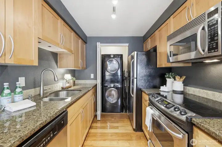 Welcome to AraVita, ideally situated in the heart of Magnolia. This meticulously maintained 1BR/1B residence presents a compelling blend of livability and enduring value within 560 square feet of efficiently curated space. Interior appointments include granite surfaces, stainless steel appliances, in-unit laundry, and a wood-burning fireplace introducing both texture and ambiance. Natural light permeates the interior through a private, sunlit balcony, while its quiet position within the building creates a peaceful, retreat-like setting. A community that reflects proactive stewardship, with significant capital improvements including new siding, insulation, windows, and a newer roof, alongside planned elevator modernization. Residents benefit from secure access, Amazon Locker convenience, and ample street parking. Ideally located near Discovery Park, Downtown Seattle, Ballard, Queen Anne, and major tech hubs, with easy access to dining, shopping, and outdoor recreation. An exceptional investment opportunity with NO RENTAL CAP and NO SPECIAL ASSESSMENTS. Pre-inspected and move-in ready. Truly noteworthy.