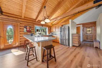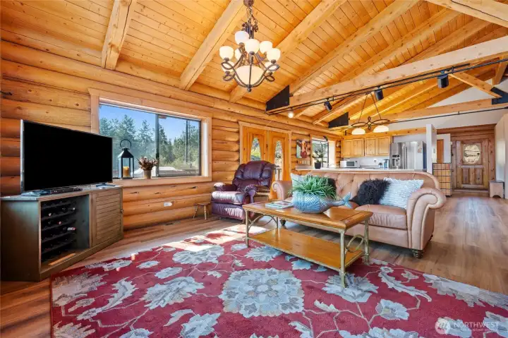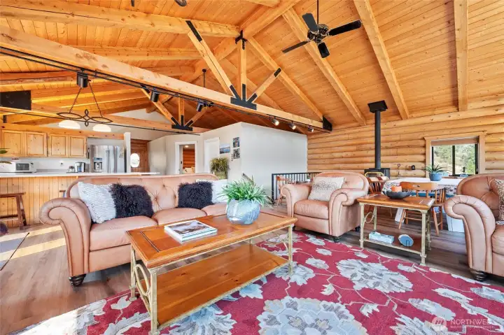Escape to the perfect blend of rustic charm and modern comfort in this beautifully remodeled 2,700± sq ft log cabin on Lake Roosevelt. Set on 2.2± acres, this timeless retreat offers warmth, character, and thoughtful updates throughout. Inside, soaring wood-beamed ceilings, a striking wood stove, and expansive windows showcase stunning river views and fill the home with natural light. The updated interior balances modern finishes with a cozy cabin feel. A main-level primary suite, plus two additional bedrooms below, provide comfortable sleeping space for up to 12. Outdoors, enjoy easy access to the water, a sandy beach, and peaceful surroundings. Relax on the deck, cast a line, or soak up the sun along the shoreline. Whether you're creating lasting memories or generating income as a vacation rental, this property offers incredible versatility. Mooring ball included. Sold furnished—call for details.