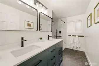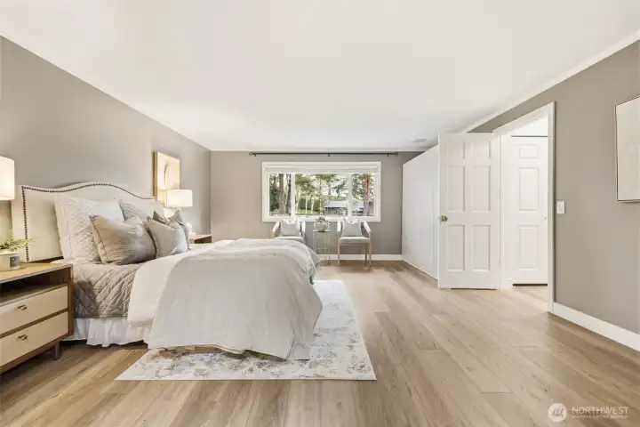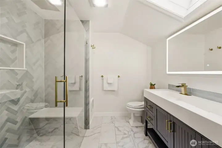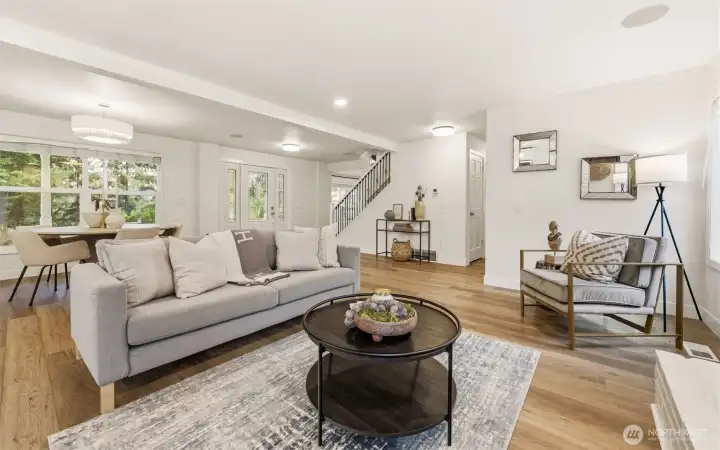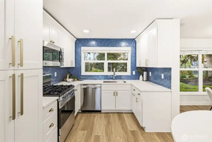 Step inside to a beautifully updated main level designed for modern living and effortless entertaining on a spacious 17,700sq ft lot. The renovated kitchen anchors the home with fresh finishes and great flow, complemented by new flooring throughout and integrated ceiling speakers on both levels and outdoors. A main-level flex room adds versatility—ideal as a guest room, office, or home gym. Upstairs, you’ll find 4 bedrooms, including a serene primary suite with a fully updated, light-filled bath enhanced by new skylights. Every bathroom has been stylishly remodeled, creating a cohesive, modern feel throughout the home. Over $350K in thoughtful upgrades elevate the property: new roof, gutters, exterior paint, garage doors, updated electrical panel, and added A/C for year-round comfort. And then… the backyard. A true showstopper and entertainer’s dream. Fully fenced, flat, and completely reimagined with turf, a sport court, putting green, spacious patio, grilling area, and outdoor kitchen. New irrigation and landscape lighting add both function and ambiance. Located on a quiet, walkable street near Medina Park, Medina Elementary, the beach, and Overlake Country Club—within the award-winning Bellevue School District. Turnkey, stylish, and ready for modern living.