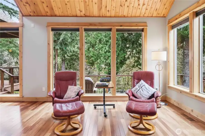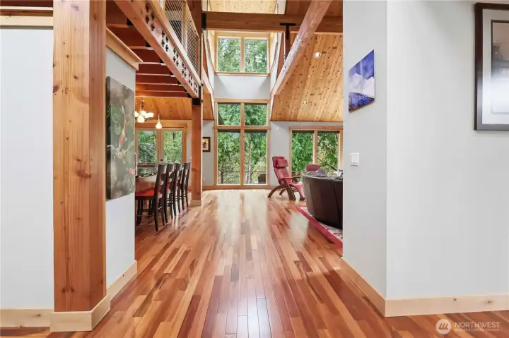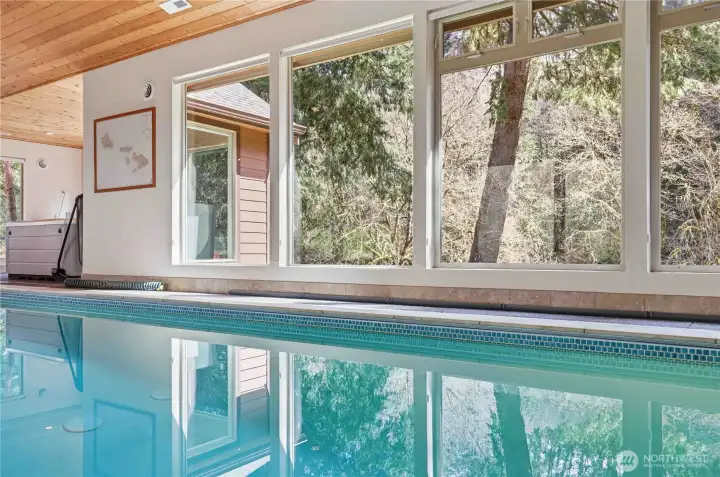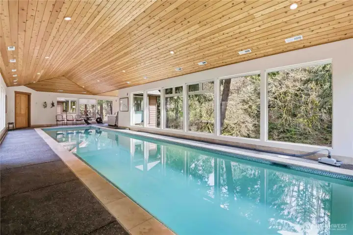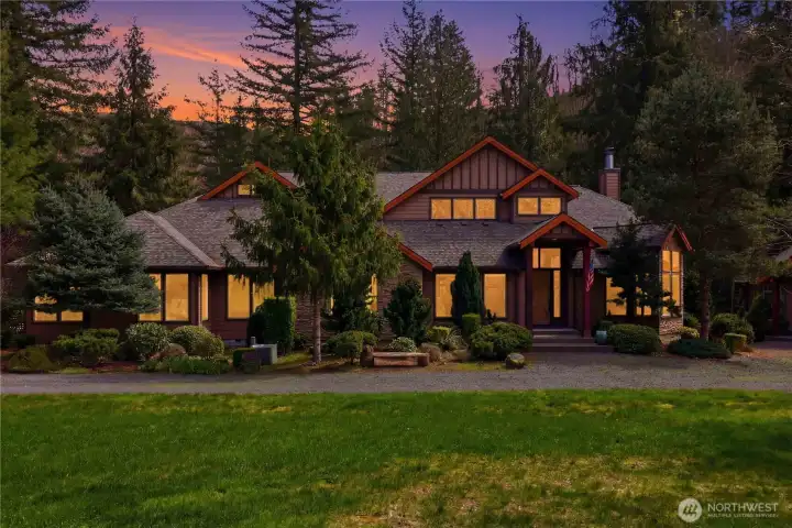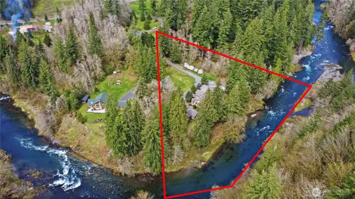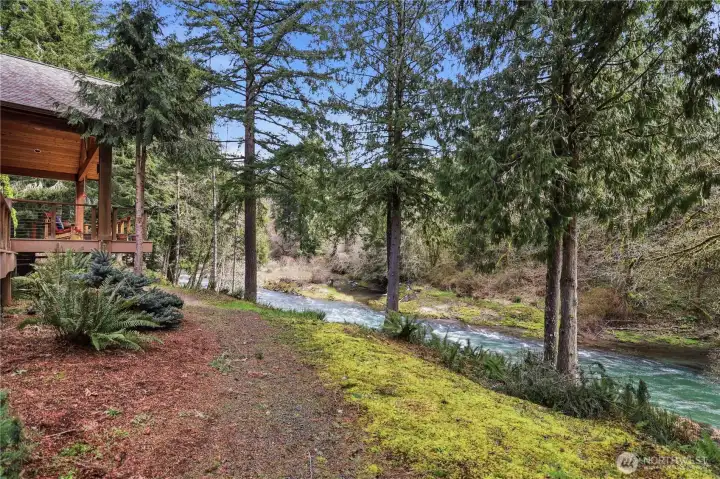 Experience exceptional riverfront living on the Kalama River. Situated on 2.76 private acres with approximately 620 feet of frontage, this 4,051 sq ft custom home offers 3 bedrooms and 4 bathrooms in a peaceful, natural setting just minutes from the well-known “Holy Waters” stretch. Inside, the home features Brazilian tigerwood floors, vaulted cedar-lined ceilings, exposed beams, and custom ironwork that bring out a strong Northwest feel with real craftsmanship throughout. Expansive windows take in river, territorial, and mountain views while bringing in natural light. The layout offers comfortable living spaces and multiple primary suites, making it easy to live in or host. Step outside to Trex decking overlooking the river and a natural waterfall, creating a private setting for relaxing or entertaining. The 1,502 sq ft detached pool house includes a heated indoor lap pool, 650-gallon jacuzzi, and 3/4 bath, set up for year-round use. Additional features include a 3-car garage, extra parking, RV space, high-speed fiber internet, and landscaped grounds with garden space and fruit trees. A unique opportunity to own a riverfront property with acreage and resort-style features in one of Southwest Washington’s most desirable areas.