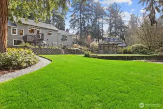 Bordering Eagle Landing Park, this private sanctuary offers an exceptional connection to nature and effortless indoor-outdoor living. The beautifully landscaped grounds feature mature trees, lush planting and garden beds, expansive lawn, and generous patio spaces—all opening to protected parkland with trails and sweeping views. Inside, the light-filled main level captures serene vistas from nearly every room. Rich wood floors lead to a bright kitchen with quartz counters and timeless shaker cabinetry. The inviting living room is designed for gathering, with vaulted ceilings, built-ins, a cozy stone fireplace, and picture window overlooking the tranquil backyard. Two dining areas provide flexibility for both holiday entertaining and everyday living. The bedroom wing includes a spacious primary suite with a walk-in closet and ¾ bath, plus two additional bedrooms, full bath, and powder room. Each bedroom enjoys views of the backyard, adjoining park, and seasonal glimpses of Puget Sound. The lower level offers a warm and welcoming family room, fourth bedroom, utility room, powder room, abundant storage, attached 2-car garage, and ample off-street parking. Great walking neighborhood with proximity to Lake Burien, Seahurst Park, and all that downtown Burien has to offer!