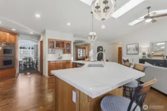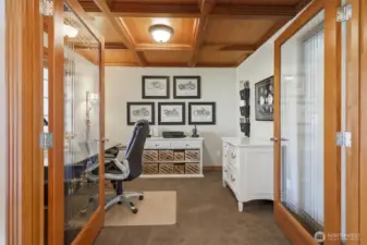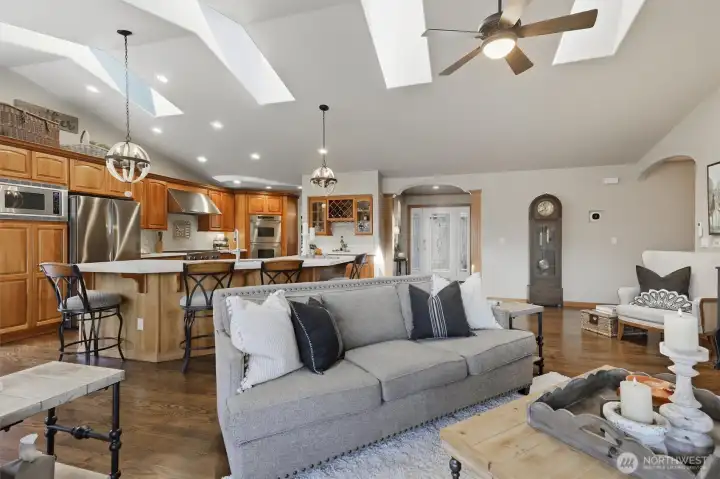 New 30-Year Roof. Experience refined single-level living in this meticulously crafted 2,273 sq ft luxury residence offering 3 bedrooms, 2 baths, a private den/office, and a 3-car garage. Designed for those who value quality, comfort, and effortless living, this home blends timeless elegance with thoughtful modern conveniences. Exquisite craftsmanship is showcased throughout with hardwood floors, solid-core doors, coffered ceilings, crown molding, custom accent lighting, stained-glass inlays, and rich wood shutters. The chef’s kitchen is both beautiful and functional, featuring natural cherry cabinetry, walk-in pantry, wine nook, expansive island with bar seating, and premium DACOR appliances, including a double oven and warming drawer—perfect for entertaining at any scale. The luxurious primary suite serves as a private retreat, complete with a spa-inspired bath featuring heated slate floors, a rain shower with six body sprays, jetted soaking tub, and generous walk-in closet. Every detail has been curated for comfort and indulgence. Additional high-end amenities include A/C, electric skylights, central vacuum, generator-ready wiring, exterior hot-water hose bib, and a professionally landscaped, fenced and sprinklered yard with gazebo—ideal for serene outdoor living. A rare opportunity to own a high-quality, single-level luxury home where elegance meets ease—crafted for discerning buyers seeking comfort without compromise.