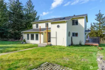 Quiet, private contemporary home in Lake Farm Area. Just minutes from both Sequim and Port Angeles. Not far from the Discovery trail. Main level 2 BR, 1 Bath with family room and 2 more rooms for offices or? Primary Bedroom & bath, Kitchen .dining . living room up. great layout with room for growth.