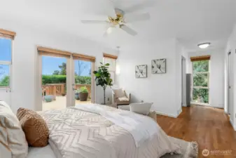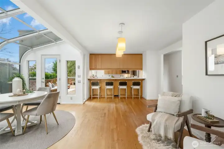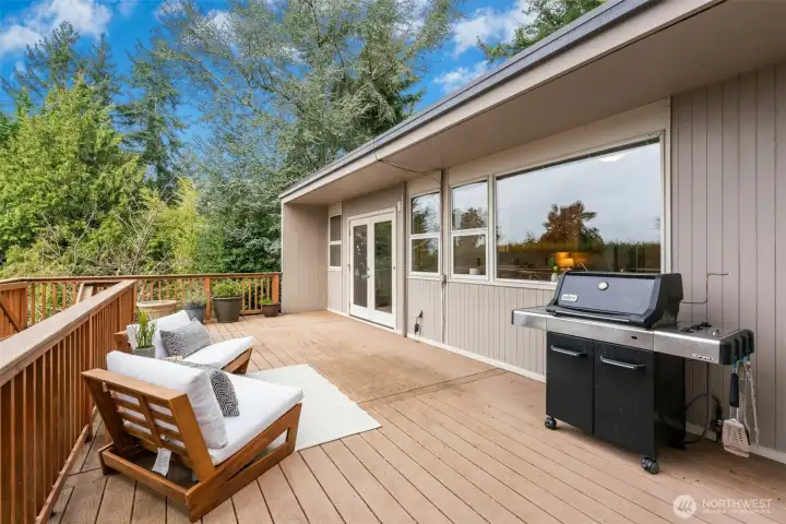 Classic mid-century modern home custom designed by acclaimed NW architect Myron Lewis, in sought-after Denny Park neighborhood of Kirkland. Ideally situated on a tranquil 12,360 SF lot along a quiet cul-de-sac, this spacious 4 BD + bonus room, 3 BA, 3,663 SF residence offers a seamless blend of timeless design & everyday functionality, w/beautiful views of Lake WA from the main level & expansive deck. Light-filled living spaces showcase classic mid-century character, highlighted by curved glass solarium that fills the home with natural light. The inviting living room features gas fireplace & flows into the dining areas & well-maintained kitchen, complete w/newer gas cooktop, stainless steel appliances & breakfast bar. Primary suite w/French doors leading to the deck, updated bath & walk-in closet. Spacious lower level w/large family room, wet bar, multiple flex &/or storage spaces & direct access to the backyard—perfect for entertaining or multi-generational living. Exceptional outdoor living w/spacious Trex deck capturing lake views, brand-new lower deck, & private backyard. Recent updates include new interior paint, carpet & lighting. Unbeatable location just steps from O.O. Denny Park & 600+ acres of protected forest & trails. A+ Lake Washington schools & just mins to Juanita Village, downtown Kirkland, St. Edward State Park & iconic Inglewood Golf Club. Rare opportunity to enjoy true mid-century modern design, peaceful surroundings, and an exceptional Eastside lifestyle!
