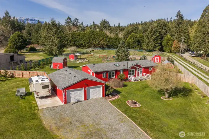 Come live your best country life in this lovingly cared for and completely updated home between Sequim and Port Angeles. With almost two acres of room to play and garden this ready-to-go property is perfectly set up for a mini farm and self-sufficient lifestyle. Imagine watching your baby plants come to life in the greenhouse, moving them out to the raised beds in the bird-proof garden area, and then getting to enjoy them in your own farm to table culinary adventures. Enhance your life with with small farm animals; their homes are move-in ready too! From weather proof goat haven to duck or chicken palace, all of the outbuildings have electricity and the property is completely fenced and gated for security. Invite friends to stay and enjoy your light-filled, comfortable space with full motor home hook-up and split bedroom layout for privacy. The picture is completed with double deep garage with space for four cars, storage, and hobbies. A lovely Northwest home ready for your Northwest dreams.