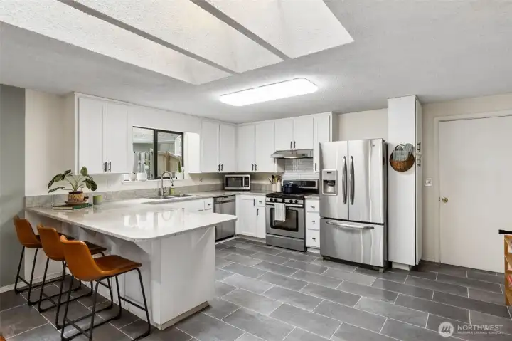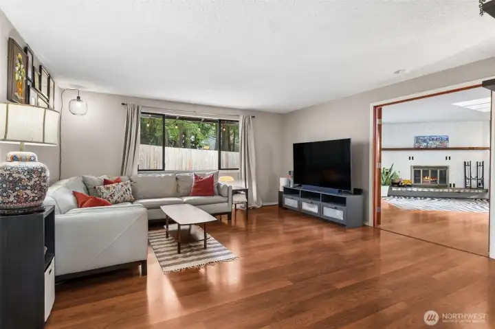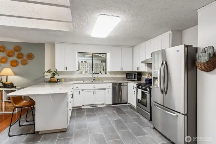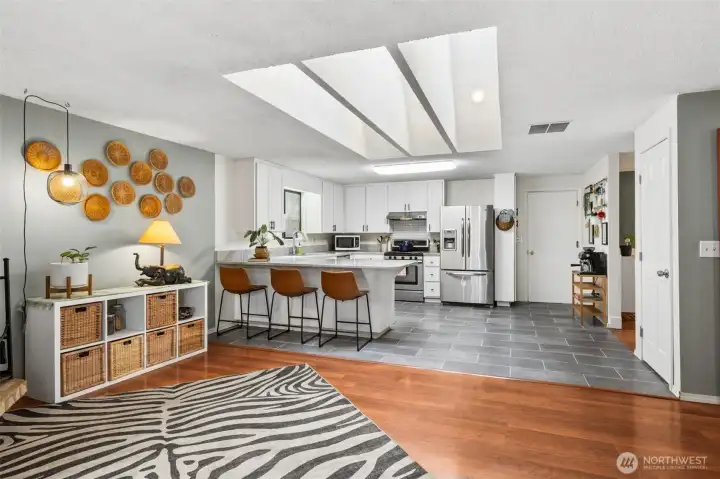 Welcome to Wilderness! Hard to find 4-bedroom rambler offers the perfect blend of comfort, style, and location. The beautifully updated kitchen features granite countertops, tile flooring, and stainless steel appliances—ideal for both everyday living and entertaining. A spacious living room showcases rich hardwood floors, a skylight that fills the space with natural light, and a charming brick fireplace. The primary bedroom includes an updated 3/4 bathroom, providing a private retreat. Enjoy seamless indoor-outdoor living with sliding doors off the family room that open to a large, secluded, fully fenced backyard backing to a peaceful greenbelt. Located within the highly sought-after Olympia School District, this home is just minutes from downtown Olympia, shopping, dining, schools, and easy access to I-5. A rare opportunity you won’t want to miss!