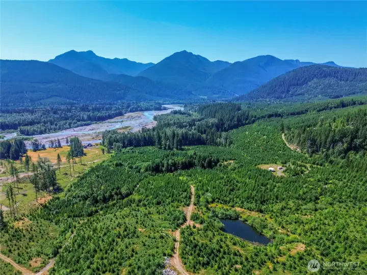 Rare 19+ acre mountain retreat in Packwood with stocked fish pond and ready-to-build sites for your dream home and ADU. Take in sweeping 360° views of Mt. Rainier, the Goat Rocks, and Tatoosh Range. Beautifully treed with replanted fir under forest tax designation for low taxes and privacy, plus abundant wildlife. Power and drilled well installed; septic needed. Borders public land for endless recreation, yet just minutes to town, White Pass Ski Area, and Mount Rainier National Park. Shown by appointment only—please do not access without agent.