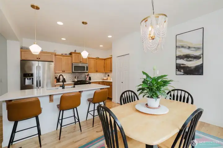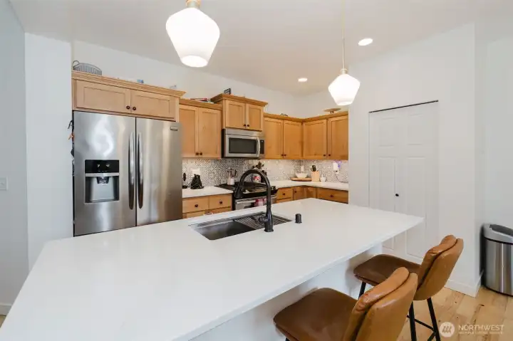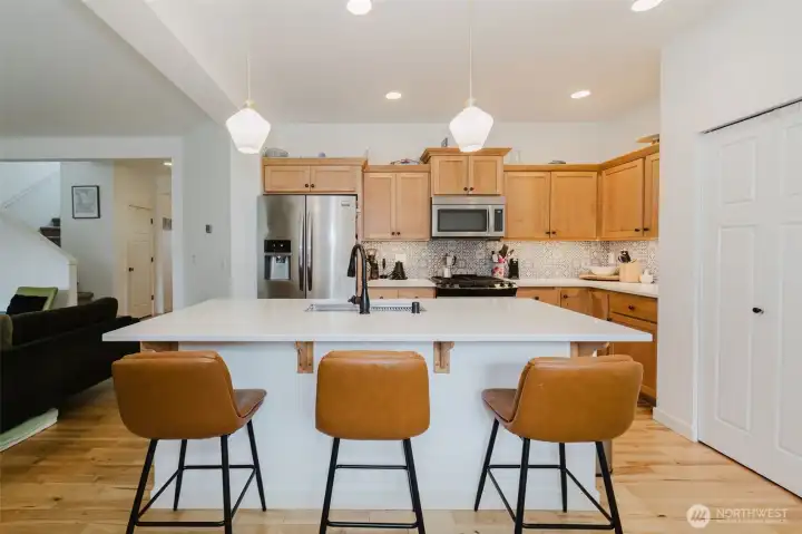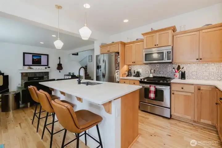 Stunning, convenient, and thoughtfully designed, this beautiful home in the sought-after Silverleaf community perfectly blends modern construction with low-maintenance living and an ideal location. The main level features hardwood floors, quartz countertops in the kitchen, a cozy gas fireplace in the living room, and a versatile office nook, all complemented by vaulted ceilings that create a bright, open feel. Upstairs, you’ll find two bedrooms, a convenient utility room, and a spacious primary suite with a luxurious ensuite bathroom and relaxing soaking tub. Located within the award winning Ck School district and just minutes from shopping, groceries, St. Michael Medical Center, Highway 3, and all local military bases: Bangor, Keyport, PSNS. The home is backed by a greenbelt, giving added privacy and the Silverleaf HOA maintains the front yard landscaping for worry-free curb appeal. Come see it before it's gone!