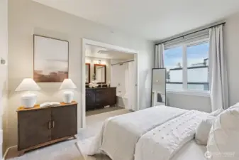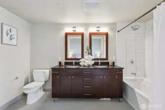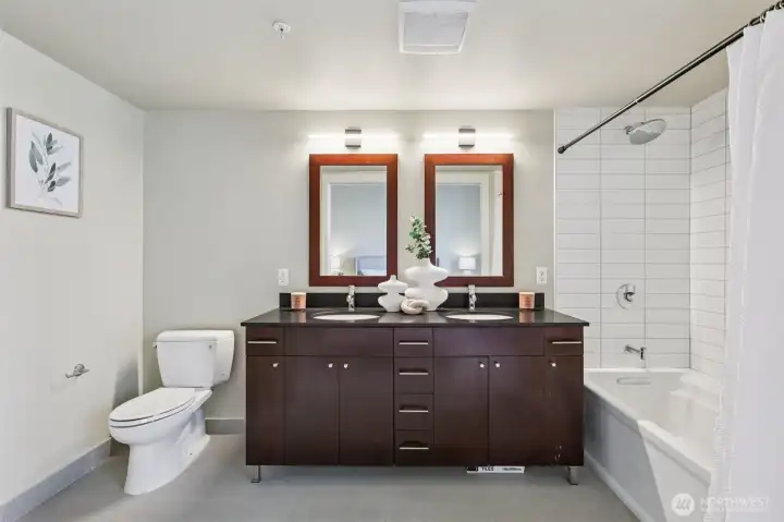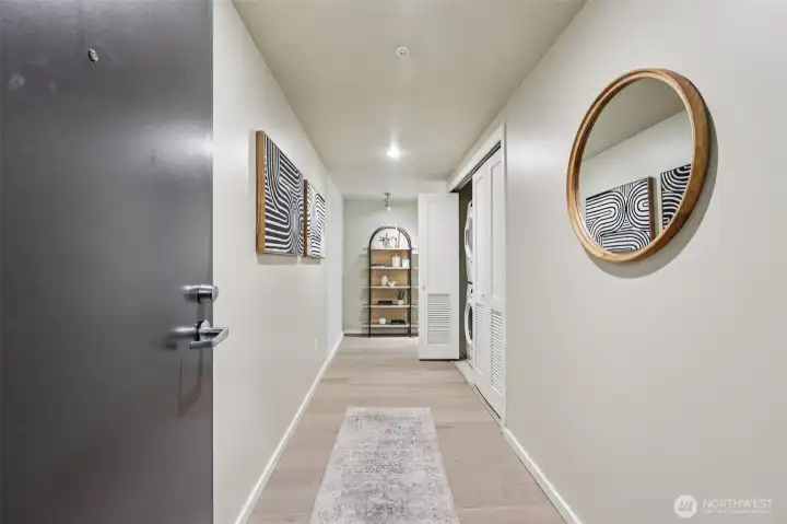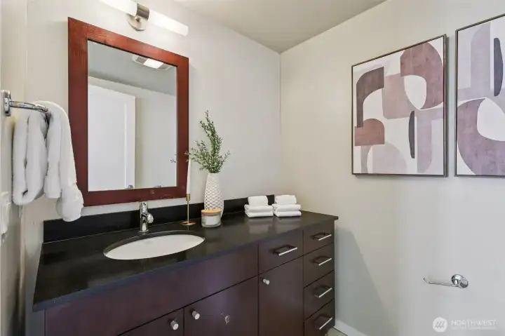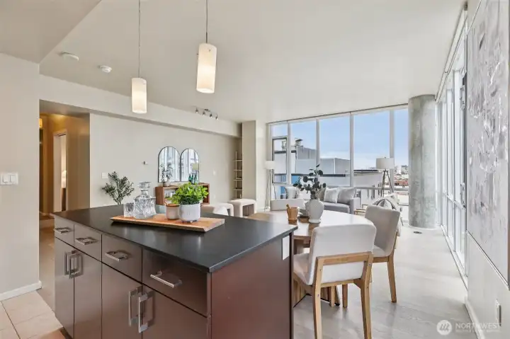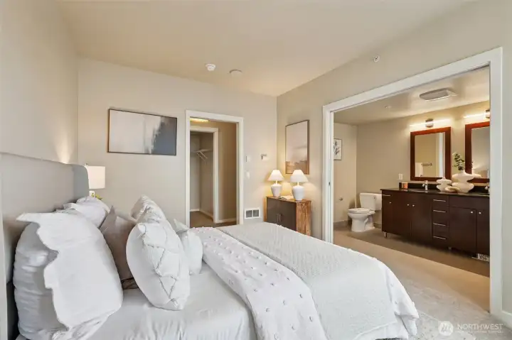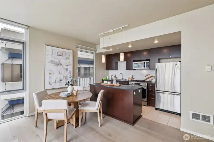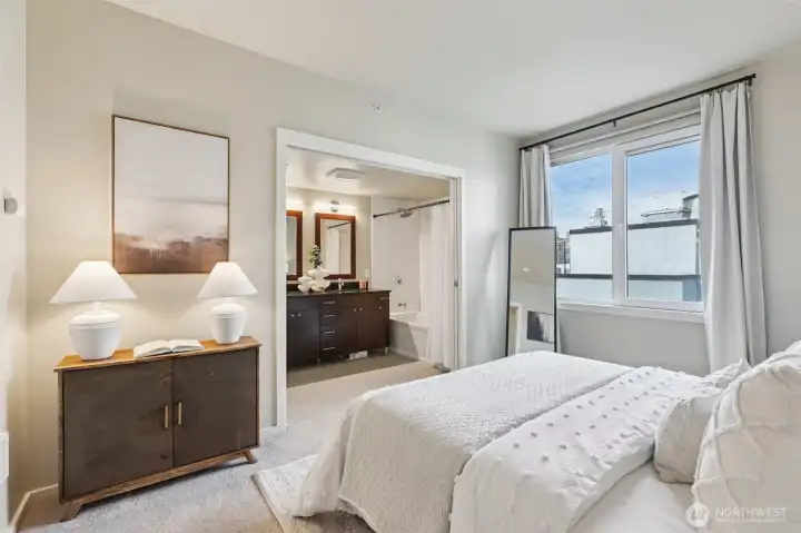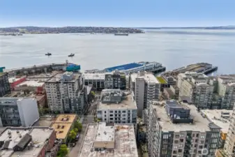 Welcome to The Parc — one of Belltown's most sought-after condo buildings. This stunning corner unit on the 10th floor offers breathtaking views and an abundance of natural light through dramatic floor-to-ceiling windows. The thoughtfully updated 1 bed, 1.5 bath layout features a fully remodeled primary suite (2024) complete with a new tub, shower, and tile — plus new carpet and fresh paint for a move-in-ready feel. The kitchen shines with a new stove range (2024), and peace of mind comes standard with a new water heater (2025) and in-unit washer/dryer. New flooring ties the space together beautifully. Building amenities are second to none: 24/7 concierge, a fully equipped gym with squat rack, free weights, and cardio machines, plus a rooftop deck with stunning Sound and city views. Assigned parking and storage included. Minutes from the waterfront, South Lake Union, Pike Place Market, and downtown Seattle — urban living at its finest.