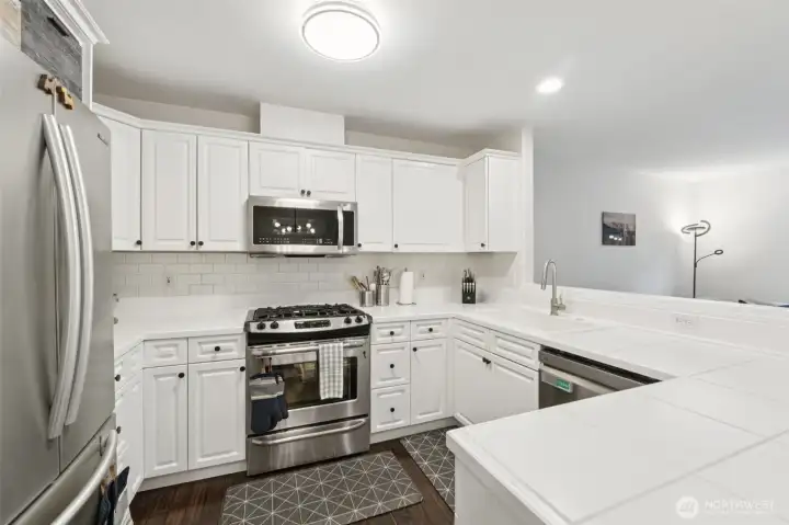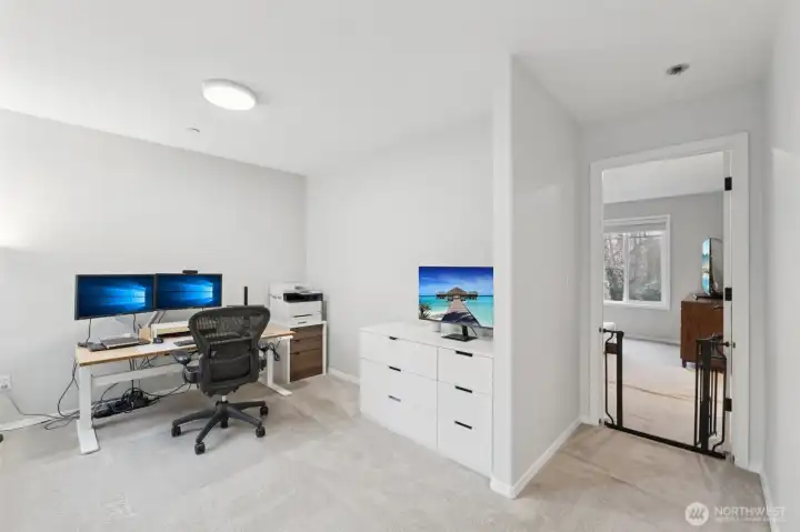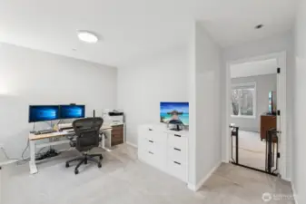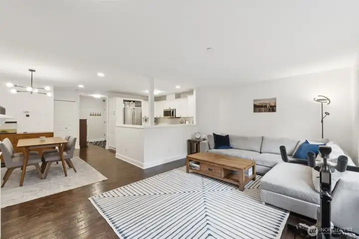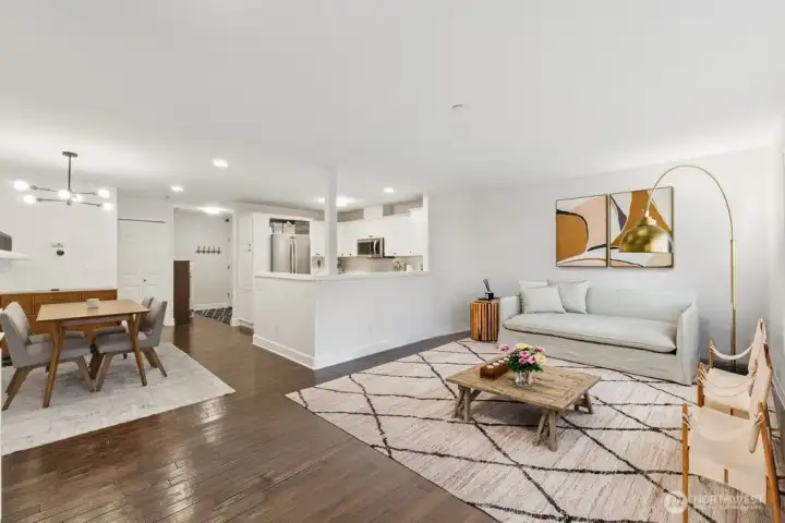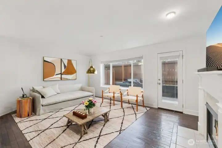 Not your typical townhome! Centrally located near 5 Corners in Edmonds, this 2+ bedroom home lives large with a bonus room upstairs that could easily become a 3rd bedroom, and even a large basement workshop/gym/storage room! The main level is light and bright with fresh paint and lighting, rich engineered hardwood floors, sleek gas fireplace, and custom window treatments. The private patio is embraced by cherry blossom, and the attached 2 car garage is EV ready! The primary suite includes a large bath and luxurious walk-in closet. Moments away from downtown Edmonds, schools, shopping and I-5, this checks all your boxes and more!