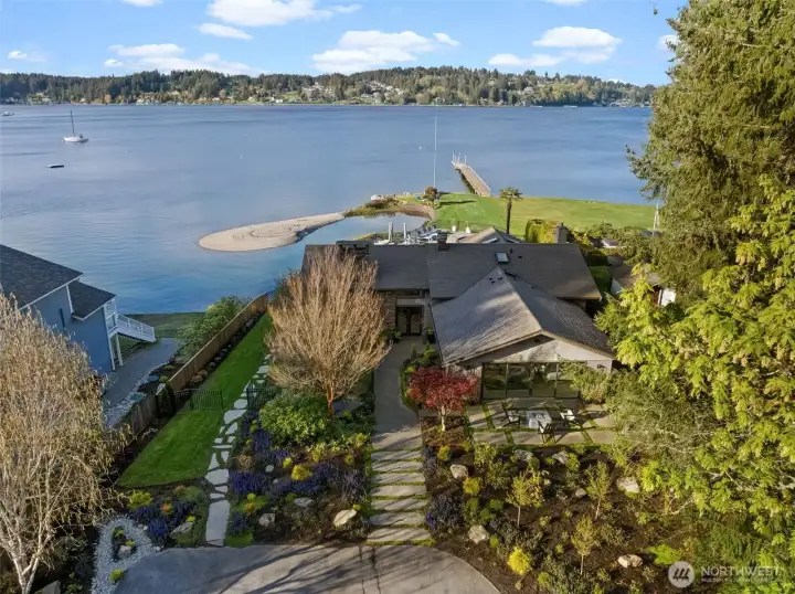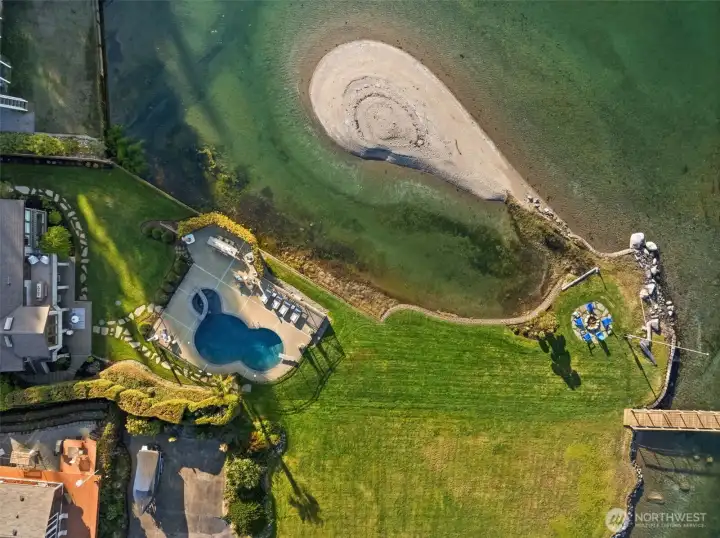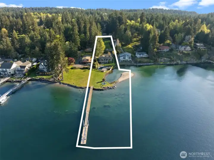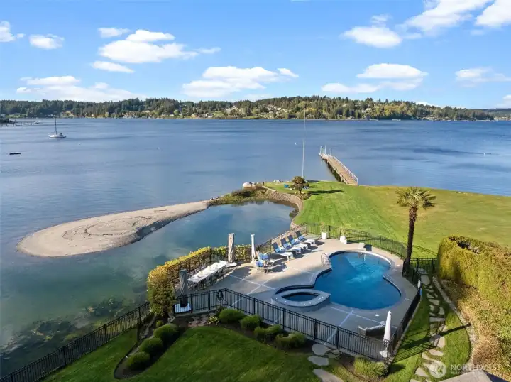 A rare and extraordinary offering on coveted Fox Island, this private 2.5+ acre estate presents true no-bank waterfront with an exceptional connection to the shoreline. A sweeping sand spit extends from the property, creating a distinctive coastal setting, while the deep-water dock provides immediate access to Puget Sound for boating, fishing, and year-round recreation.Recently renovated to an elevated standard, the residence showcases a modern yet playful aesthetic, blending refined design with effortless waterfront living. Expansive windows capture panoramic water views and fill the interiors with natural light, while curated finishes and thoughtful details create a sense of understated luxury throughout.The grounds offer a resort-like experience with a stunning in-ground pool, generous outdoor living spaces, and lush, private surroundings. The 2.5+ acres provide rare scale and seclusion, with opportunities for possible future expansion seldom found on the waterfront.Located just minutes from the Fox Island bridge, this property offers a balance of privacy and convenience with easy access to Gig Harbor. Level no-bank frontage, sandy shoreline, deep-water moorage, and acreage make this a truly exceptional and rare waterfront opportunity.A legacy estate defined by timeless design, premier waterfront, and an unmatched Pacific Northwest lifestyle. With Mt. Rainier in the distance this home has it all!