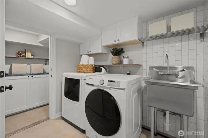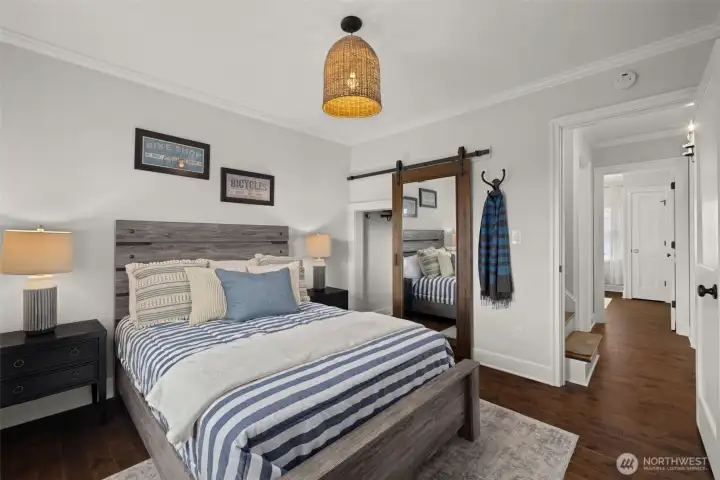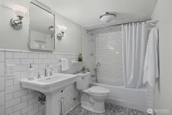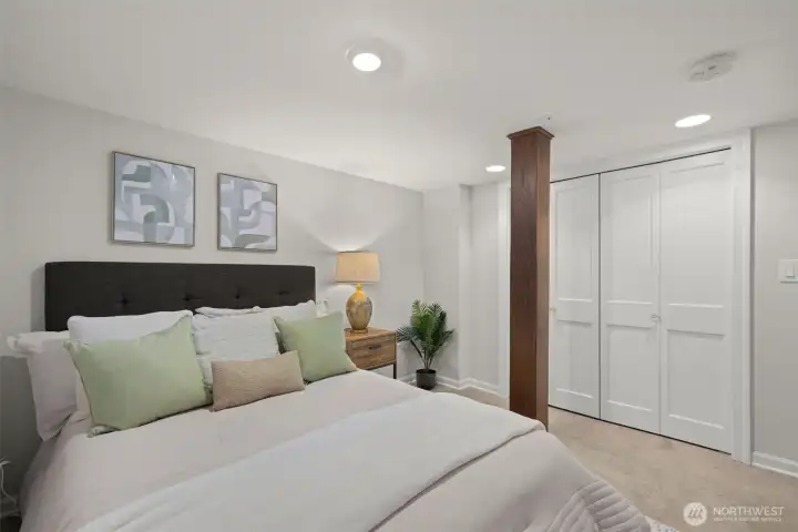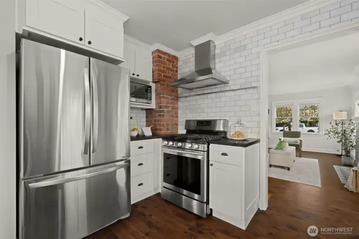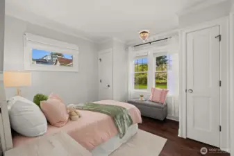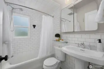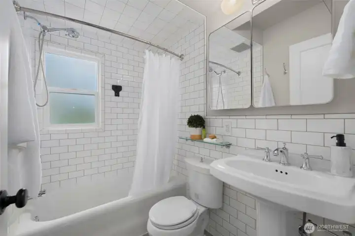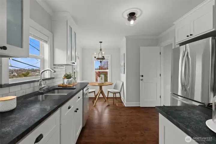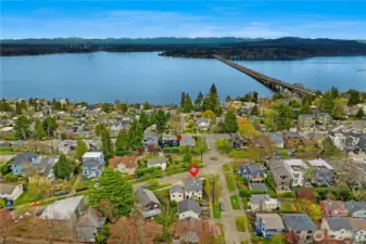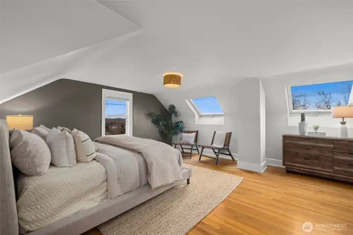 Perched on a corner lot in leafy Leschi, this thoughtfully renovated Craftsman welcomes you with timeless charm at every turn. Stepping inside, gleaming hardwood floors lead into a warm living room where a wood burning fireplace invites quiet evenings or lively conversation. From there, the kitchen unfolds with elegant soapstone counters, a marble tile backsplash that meets original brick, and stainless steel appliances, opening to a sun-drenched breakfast nook, perfect for casual meals or lingering conversation as the day begins. Upstairs, the primary bedroom feels both airy and intimate, with two large skylights set at just the right height to catch views of the city beyond. When it rains, the gentle patter above creates a cozy, comforting rhythm that carries into the en-suite bath, where refined finishes and classic subway tile bring a clean, modern touch. The lower level provides flexible living as an optional ADU, complete with private entrance, well-appointed kitchen, in-unit laundry, spacious bedroom with en-suite bath, and cozy family room. Ideal for guests, extended living, or flexible use, with finishes that feel seamlessly cohesive with the rest of the home. Coveted two-car garage and additional driveway parking add everyday convenience, while the location places you just moments from parks, the shores of Lake Washington, neighborhood dining, and easy access to downtown Seattle and the I-5 and I-90 corridors via car or nearby light rail station.