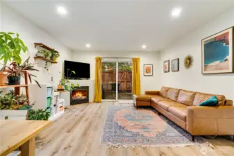 This spacious and light-filled townhouse offers comfort and privacy, a gated entry with security code. The ground-level living room boasts natural light and a cozy gas fireplace, leading to a private patio for outdoor relaxation. The updated kitchen is complete with matching stainless steel appliances. The large primary bedroom features vaulted ceilings and an en-suite bathroom. Ceiling fans throughout, ensuring a comfortable atmosphere year-round. Additionally, the home offers a versatile loft/bonus room for extra space. A new roof installed in 2020, and there's no HOA. Also one off-street parking space. Located just 0.1 miles from Saars grocery store, and with easy access to I-5 & light rail, home offers both convenience and tranquility.