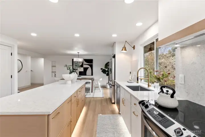 Fully reimagined luxury rambler nestled within a private gated community, offering a rare blend of sophistication, comfort, and effortless single-level living. This extensively renovated home showcases a refined open-concept design with elevated finishes throughout. The main living area is filled with natural light and seamlessly connects to a designer kitchen featuring custom cabinetry, premium countertops, and high-end appliances—crafted for both everyday living and elevated entertaining. Every detail has been thoughtfully curated, from the wide-plank flooring to the modern fixtures and clean architectural lines. The primary suite serves as a private retreat with a spa-inspired bath and generous closet space. Additional bedrooms offer flexibility for guests, office, or lifestyle needs without compromising style. The outdoor space is equally intentional, providing a private setting ideal for relaxation or hosting. Located within a gated community, the home offers added privacy while remaining close to local amenities, dining, and major commuting routes. An exceptional opportunity to own a turnkey, fully renovated residence in a sought-after community.