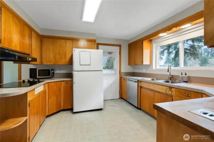 Step into timeless mid-century charm with this beautifully maintained 4-bedroom, 3-bath home offering 2,668 square feet of inviting living space. The main level welcomes you with a spacious, light-filled living room centered around a striking fireplace—complete with a unique electric dumbwaiter for effortless wood delivery. Large windows flood the home with natural light, creating a warm and airy atmosphere throughout. The kitchen features abundant cabinet and counter space, along with an updated double oven—perfect for everyday living and entertaining alike. Just off the kitchen, step onto the deck and enjoy views of the fully fenced backyard, ideal for relaxing or hosting gatherings. Downstairs, the fully finished basement expands your possibilities with a wet bar, tile flooring, and a private patio entrance—making it an excellent option for entertaining, multigenerational living, or potential rental income. Outside, the freshly landscaped front yard with beautiful flagstone adds to the home’s curb appeal. Located just blocks from the community park and pool—with no HOA fees—this home offers both comfort and convenience.