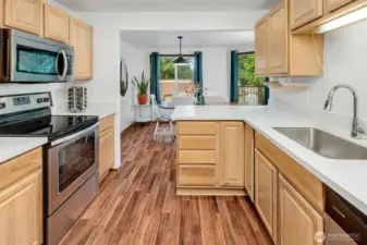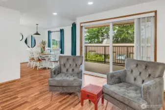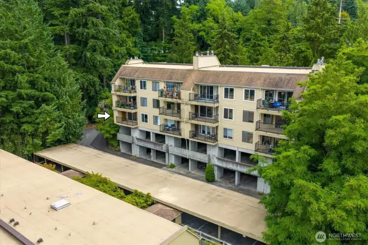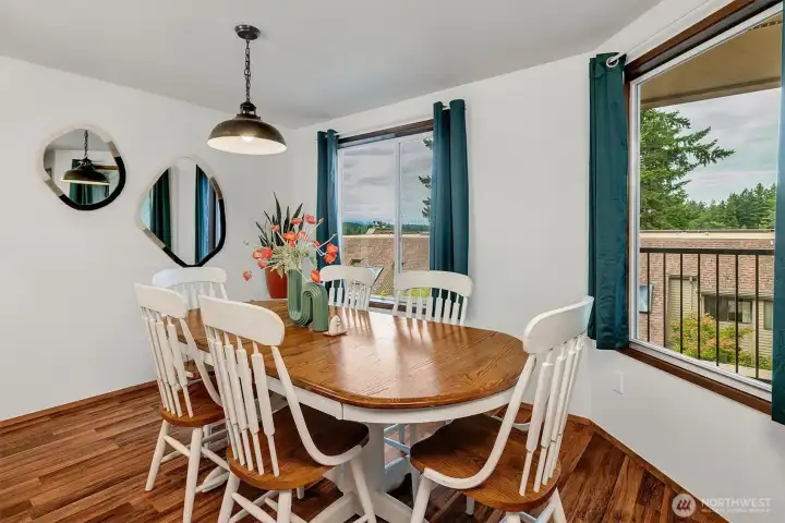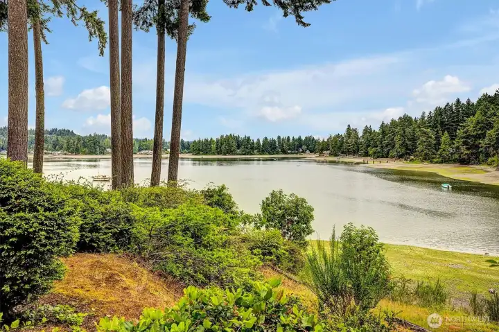 Waterfront living! Easy access to this 1st floor (no steps) spacious with bright windows and lots of updates. Walk down to the water and experience the Puget Sound from your own backyard on Oyster Bay. Entertain, cook, and gather in a beautifully updated kitchen featuring new white quartz countertops, solid wood cabinetry, and premium stainless-steel appliances, including a built-in oven and microwave. Enjoy the serene views of the mountains and the sound from balconies off the living room and the primary bedroom. Gather around the charming brick fireplace, the glowing heart of this spacious living room. 2 assigned covered parking spots and additional (252 SqFt) storage room in the parking garage. No Rental cap. Bring your Cash offer