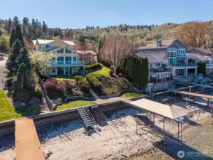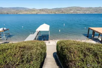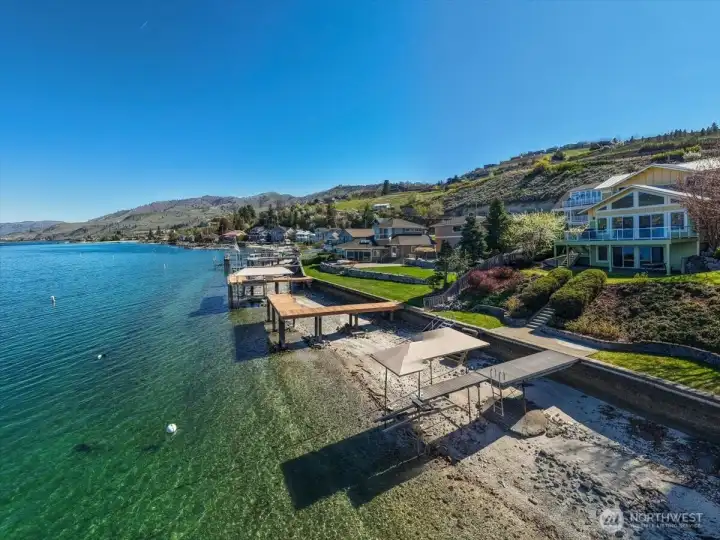 Step into a truly exceptional waterfront retreat at the coveted entrance to Minneapolis Beach Road—where refined living meets effortless lakeside enjoyment. This remarkable property is designed for both elevated entertaining and serene everyday living, offering a rare combination of privacy, space, and direct access to Lake Chelan. From your private shoreline and inviting swimming bay to the covered boat lift, dock, and buoy, every detail has been thoughtfully curated for a seamless waterfront lifestyle. Expansive terraced lawns create the perfect setting for outdoor gatherings and games, while the fenced yard provides peace of mind for pets and little ones. Multiple patios and decks invite you to relax, host, and take in the surroundings. Inside, the home continues to impress with four bedrooms and four baths, including a main-level primary suite with a spa-inspired ensuite. The great room is framed by a vaulted wall of windows capturing lake views and filling the space with natural light. Enjoy cool summer breezes or cozy up beside the river rock fireplace in winter. An expansive game or media room offers endless possibilities for gatherings and relaxed evenings. A bonus informal living room lake level. Lush landscaping enhances privacy, while generous storage and a two-car attached garage ensure convenience. Opportunities like this are rare—finding a home of this size and quality on Lake Chelan’s south shore is truly exceptional.