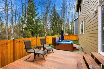 Exceptionally well-maintained 4-bedroom Bothell home tucked at the end of a quiet cul-de-sac, backing to natural growth protection areas on two sides. Built in 2007 and lovingly cared for by the original owners, this 2,683 sq ft home offers privacy, space, and a layout that works for everyday life. The main floor features a formal living room and dining room with wainscoting, high ceilings, and views of the surrounding forest. The kitchen opens to a large family room with a gas fireplace and picture windows framing the wooded backdrop. Granite counters, stainless steel appliances, a gas range, and an eating bar round out the kitchen. Step outside to a spacious deck, perfect for hosting, and a hot tub surrounded by trees in a fully fenced yard with garden space and no rear neighbors. Upstairs, the primary suite overlooks the greenbelt and includes a five-piece bath with soaking tub and a spacious walk-in closet. Three additional bedrooms, each with oversized closets, and a generous bonus room, round out the upper level. Minutes from Mill Creek Town Center, top-rated Everett schools (Gateway Middle, Jackson High), and an easy commute to Boeing, I-405, and I-5. The home has a seller-procured inspection and sewer scope available.