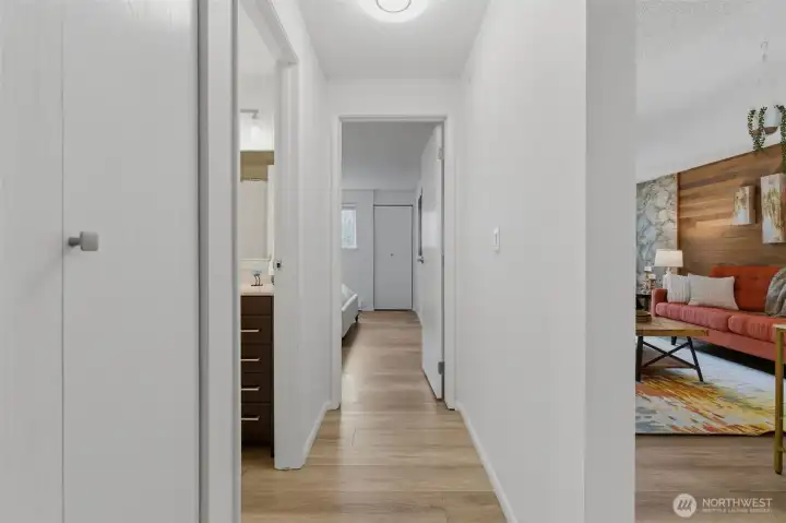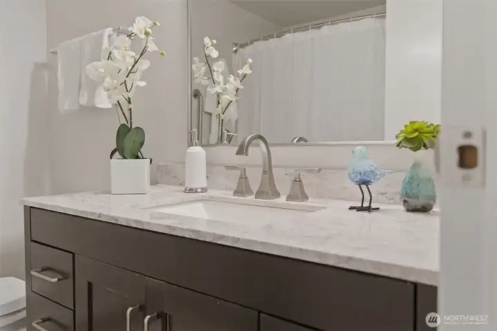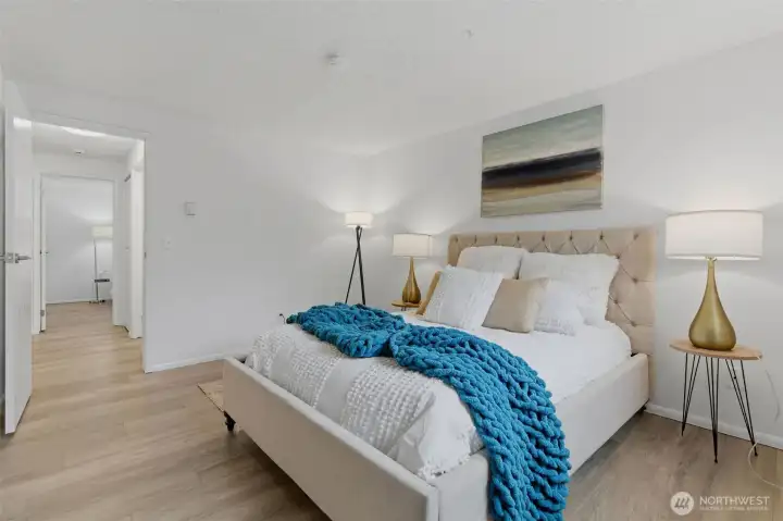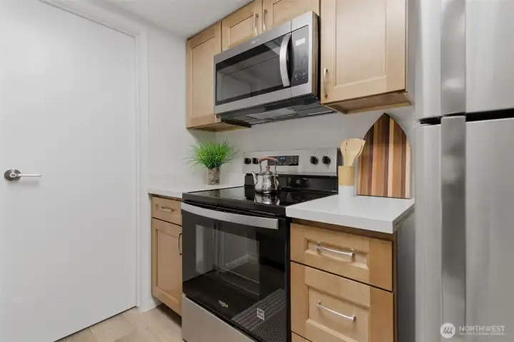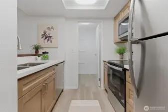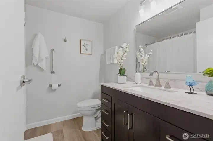 Prime Bellevue location across from Microsoft campus — you’ll love it! This updated 2-bedroom condo offers a smart, comfortable layout with luxury plank floors and fresh paint throughout. The all-new kitchen offers new cabinetry, quartz countertops, sink, faucet, and a honed wood-crafted breakfast bar, paired with stainless appliances, plus a large pantry ready for all your Costco runs. Both bedrooms offer walk-in closets with generous storage, and the full bathroom adds everyday function and comfort. Located on the ground floor, the patio extends your living space outdoors and is perfect for warm summer evenings and casual BBQs. Secure building entry, gated mailroom, coin-operated laundry on the same floor, deeded parking space, and ample visitor parking add everyday convenience. Pet-friendly community amenities include outdoor pool and tennis court. No rental cap and no current special assessments make this a strong option for both homeowners and investors. HOA dues include W/S/G and earthquake insurance. Exterior recent upgrades to the complex include new siding, roof, and double pane windows. Strong rental demand and future appreciation potential. Close to Overlake shopping, parks, trails, transit, major highways, future light rail, popular Bellevue schools, and major employers. A great value in a convenient Bellevue location.
