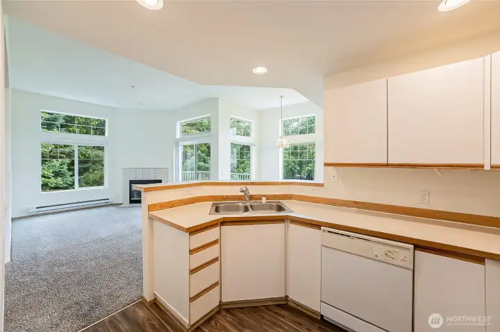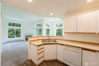 Here's the one you've been waiting for: Windward Cove at The Lakes is a hidden gem with walking trails nearby and close by "lakes" for your viewing pleasure. This fantastic light-filled condo is a dream come true: with 2-bedrooms, 2 full-bathrooms and an attached Garage. Walk in on the ground floor, then head upstairs to the kitchen, DIning room, Living Room with Fireplace, Tons of windows for exceptional natural light to fill your world, and a beautiful view of the Pacific Northwest Greenery out every window!. Full-size Washer/Dryer, Walk-in closet, and nice surprise; no one above you! Deck faces East; lovely sunsets for your enjoyment. HOA Dues are $872.00 per month and include Water, Sewer, and Landscaping. Check out this awesome condo today! WALK THROUGH VIDEO TOUR ATTACHED IN LISTING. Incredible price and exceptional condo in an excellent community. Make this one yours today!