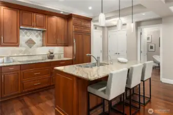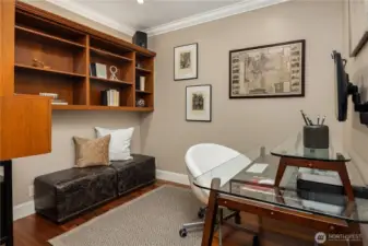 Harvard & Highland // Nestled within the private, brick-clad enclave of Harvard & Highland, this sun-filled west-facing courtyard residence offers a rare blend of timeless architecture and elevated craftsmanship in the heart of Seattle. Designed for those who appreciate refined details and effortless living, this home balances warmth, elegance, and everyday comfort. Bathed in natural light, the thoughtfully designed floor plan lives large, featuring two spacious bedrooms plus a versatile den and three beautifully appointed bathrooms. Whether hosting intimate gatherings or enjoying a quiet evening at home, the layout provides exceptional flexibility and flow. Throughout the residence, curated finishes reflect enduring quality: rich cherry cabinetry, polished granite surfaces, coffered ceilings, custom millwork, and gallery-style art lighting that elevates both everyday living and special occasions. The kitchen seamlessly connects to the main living spaces, creating a welcoming atmosphere for entertaining. The serene primary suite is a true retreat, complete with two generous walk-in closets and spa-inspired finishes designed for relaxation. Every detail has been carefully considered to create a sense of calm and sophistication. An elevated private patio extends the living space outdoors, overlooking the tranquil courtyard—an inviting setting for morning coffee, alfresco dining, or year-round enjoyment surrounded by mature landscaping and classic brick architecture.