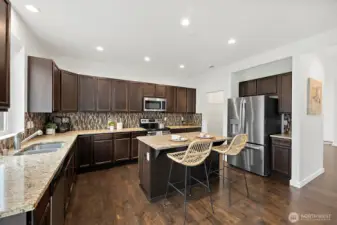 This home checks all the boxes! Pristine one owner 5 bed 2.75 bath home. Step inside to find 9' ceilings, hardwood floors that flow through entry, formal dinning and kitchen. Kitchen features SS appliances, granite counter tops, island, walk-in pantry and plenty of cabinets for all your storage needs. Dinning area opens up to spacious living room with gas fireplace, double doors leading to office/flex space. Step outside to a extended patio perfect for entertaining, gas connection for BBQ. Main level bathroom with stand up shower. Move upstairs to find the primary bedroom with En-suite 5 piece bathroom with deep soaker tub and walk-in closet. Three well sized bedrooms with full bath including double sink vanity. Massive rec room has many possibilities, make it a movie room or a place for everyone to hang out. Oversized laundry room for extra space for storage or small desk. Fresh carpet and interior paint make this home clean and move in ready. Central AC to keep you cool in the summers. Oversized 3 car garage with 9' ceilings and overhead storage racks gives you room for all the toys. Fully fenced yard with garden area. Close to HWY 410, shopping, schools, Victor falls park and much more. No HOA.
