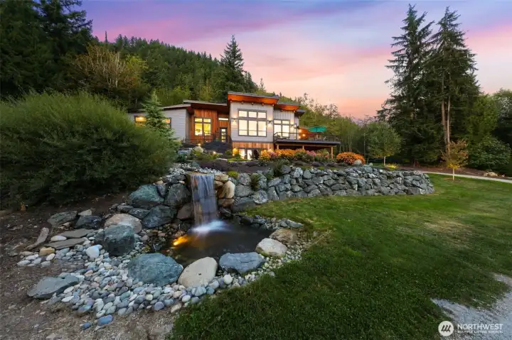 WOW this PNW south Bellingham dream custom home & property is now available.A 12+ acre estate W/a custom modern home has been creatively designed for recreation like no other.The installed active lighted water features, Koi pond with LED lit fountain,custom lit monolith Chuckanut sandstone"gotto"W/fire pits,nine campsites,powered RV sites,covered patio's,fully lit beach volley ball ct,trails and more.The newer custom built SW facing home is flooded with light.Floor plan features open concept main floor living,primary ensuite,office /den,& custom decking.Downstairs to the rec room W/ wet bar & four more spacious bedrooms, & access to front patio fire pit next to the waterfalls. All this minutes from Lake Samish, Fairhaven and the freeway.