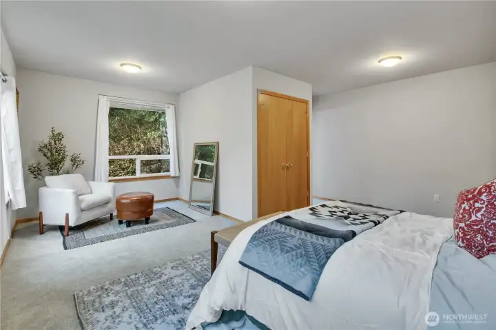 Find peace and serenity in this stunning Carnation home. Set on 5 beautiful acres, this 4,540 sqft home offers space, light, and Northwest beauty at every turn. Featuring 4 bedrooms (Plus an Office) and 3.5 baths, each room is filled with natural light from expansive windows, and vaulted ceilings. A grand foyer welcomes you with warm wood floors and an elegant wood banister, while the living room is bathed in sunlight. The oversized kitchen boasts Cambria counter tops, a brand new double oven, and opens seamlessly to a generous dining area. The thoughtful layout of the home lets you host large gathers and the patio space creates a unique indoor-outdoor entertainment space. The spacious primary suite easily accommodates a king bed and sitting area, complete with a cozy stove, large walk-in closet, and private ensuite with dual sinks and a walk-in shower. The finished lower level offers a massive bonus space ideal for a library, game room, or second living room, featuring a fireplace and bookshelves, plus a private bedroom with an en-suite. With a separate exterior entrance, the basement offers ADU potential. Don't forget about the large two-car garage (new garage door) & ample storage, an indoor storage room perfect for a workshop or home gym, and plentiful extra parking. The meticulously maintained grounds include a fully fenced pet area, a charming front-yard fish pond, and a peaceful creek. Call this peaceful home your own. Buyer walked, can't build permanent fence.