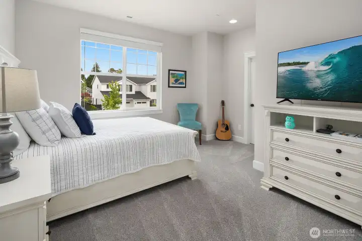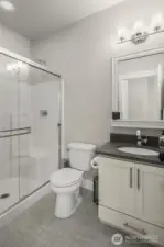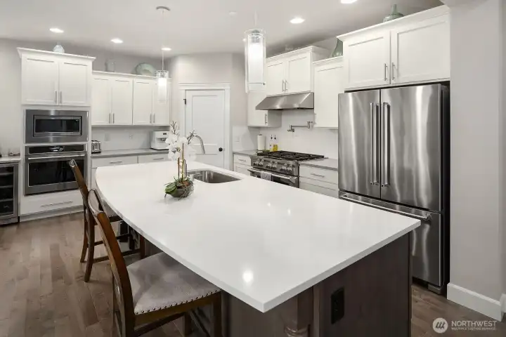 Immaculate, light, bright, 3,609 sqft 2-Story Village Life resale on level 8,276 sqft (.19 acre) lot. Improvements include: Family room built in cabinets, Laundry room cabinets and sink, Built in Buffet in daily dining area, Upgraded carpeting throughout, Primary bathroom custom walk-in closet, Garage flooring and shelving. Main floor features: Open floor plan. Hardwood floors in entry and dining room. Vaulted ceilings in family room with gas fireplace. Large Chef Kitchen with Island center, quartz counters. Nook with sliding glass door to covered patio. Bedroom. 3/4 bath. 2nd floor features: 4 beds, 2.75 baths, utility room. Owner's suite complete with vaulted ceilings, sitting area, walk in closet & luxurious en-suite bath with soaking tub, separate shower, double vanity. Fully fenced. AC. Covered Entry. 3-Car Garage. Northshore School District. Conveniently located within close proximity to 405, I-5, parks, Bothell, Canyon Park, Kirkland, Bellevue.