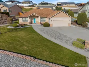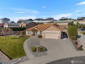 Enter this wonderful newer neighborhood with walkable streets, underground wiring, and wonderful views in all directions! At the end of a long, flat cul-de-sac find this incredibly well built like-new home. Truly fantastic opportunity to walk right in and feel at home in this immaculate one story home that has been well maintained with so many amenities. Wonderful spaces to entertain and live a comfortable daily life. Large living areas and two sided fireplace provide a truly open floor plan. The kitchen/family room area open out onto the spacious covered patio. Enjoy year round use of this space! All of the newer top of the line appliances are included, and the gorgeous finishes in the kitchen make cooking a dream. So much counterspace and storage! The master suite is a dream escape with huge walk-in shower and large walk-in closet. The tile finishes are beautiful! Two more spacious bedrooms, and a very large full bath round out this amazing home. Big mud/utility room with washer/dryer! The two car finished garage provides plenty of space for two vehicles as well as great storage! Gorgeous low maintenance yard with beautiful plantings and trees, irrigation, and a wonderful pergola to enjoy the surrounding views. A short walk to the lakes, golfing, and so much more!! This is truly an opportunity to find a home in such a beautiful location and in such fantastic condition!