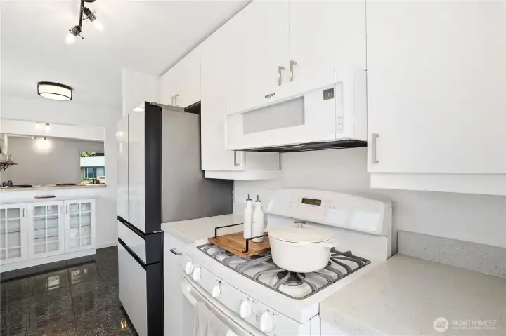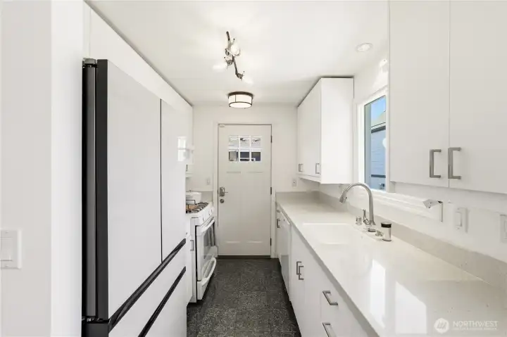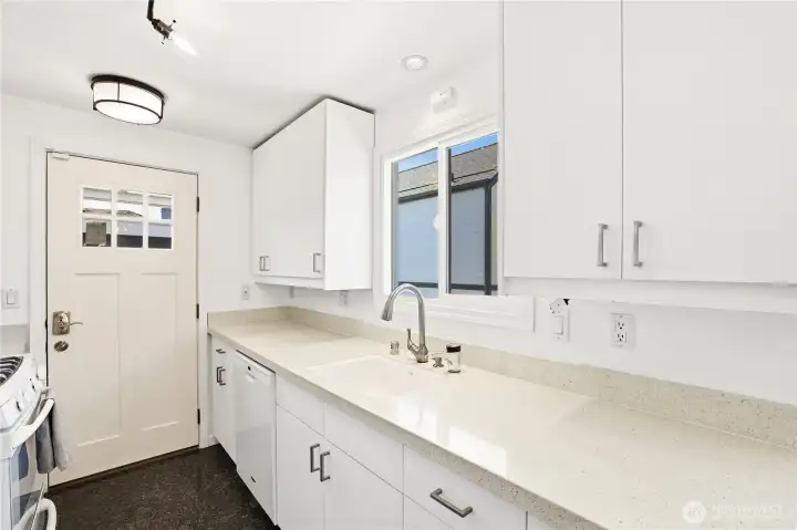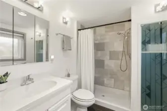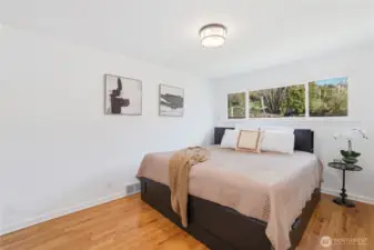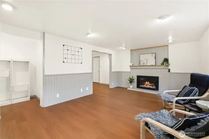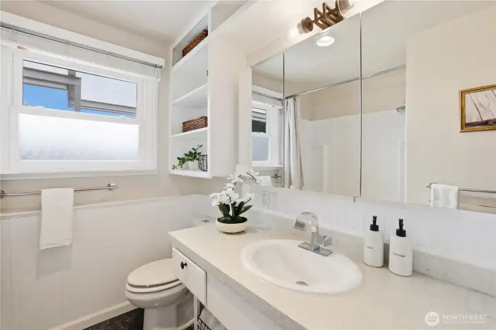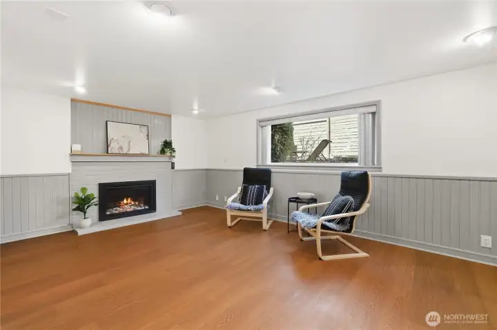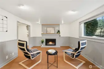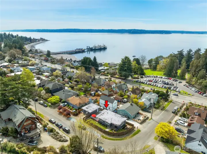 Mid-century character meets modern coastal living in this West Seattle home, located steps from Lincoln Park and Fauntleroy Ferry. The story begins in the expansive living area, where timeless hardwood floors and natural light create the perfect gathering space. The room is anchored by a floor-to-ceiling white brick gas fireplace with raw edge mantel. Host your next dinner party in the adjacent dining room, which connects to kitchen with breakfast bar. Functional design with quartz countertops and gas range for the home chef. Kitchen door leads to a private deck, where a gas stub stands ready for summer BBQs. Granite tile flooring in the kitchen and bath are elevated by radiant floor heating. Two spacious bedrooms, including primary, with cedar-lined walk-in closet. Bath with quartz counters, wainscoting and built-in cabinets finish this level. Downstairs offers versatility with its own separate entrance, third bedroom, living area with gas fireplace and 2nd kitchen - perfect for a MIL or guest suite. Don’t miss the tucked away wine room for your private collection. Outdoors, imagine hosting summer movie nights under the stars with built-in seating and TV setup. Detached two car garage, variable forced air furnace with smart thermostat for comfort, AC, tankless water heater, security system, sprinkler system and Cat6 wiring. DADU potential! Rapid Ride bus stop nearby for downtown commuters. Mortgage savings may be available for buyers of this listing.