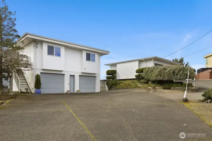 This midcentury Browns Point estate sits on two parcels with million-dollar views of Mt. Rainier, Commencement Bay and the Tacoma skyline. Incredible potential for your primary residence, multigenerational living, income producing property, home office — or all of the above! Life here is pretty special: think morning sunrises behind Mt. Rainier, daytime views of ships & orcas and then sunsets & Olympic mountain views from the hot tub or your primary suite. The 4-bedroom main home (3 beds up, 1 down) is ready for your personal touch, and the attached 2-car garage even features a mechanic’s pit. The daylight basement has great potential to be a step-free apartment with its own covered parking. The second parcel includes a separate 836 sq ft garage with a spacious 1-bedroom apartment above — with its own deck, its own views, and ready to generate income from day one! And then there's Browns Point itself — a close-knit community with lots of fun traditions like the Salmon Bake and Turkey Trot. Within a 10 minute drive, you'll enjoy amenities like the Lighthouse Park, Dash Point State Park, Northshore & Twin Lakes golf courses, and the Center at Norpoint.