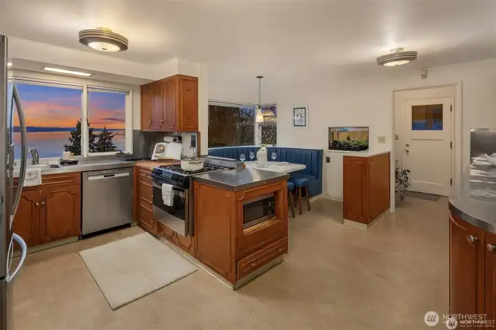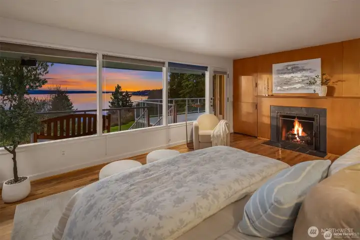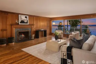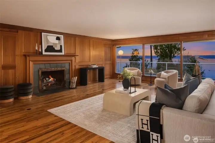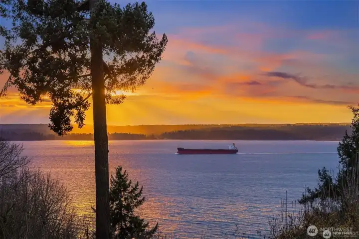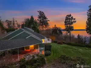 Custom-built in 1947 and nestled on 3.2 private, well-maintained wooded acres with century- old cedar and fir, this 5BR/4BA home offers Westerly sweeping views of Puget Sound and the Olympic Mountains. Rich wood floors, mahogany wainscoting, and four fireplaces showcase timeless craftsmanship. Enjoy a spacious deck for sunset entertaining, a light-filled breakfast nook, lower-level bar, and top-floor art studio with built-in desk and water views. Walking distance to shops, gym, and beaches. Backup generator, RV/boat parking, and abundant wildlife—including eagles, hawks, owls, and orca—complete this exceptional property. A rare offering with A' private beach rights and a lush, park-like backdrop—a front-row seat to sweeping Sound views and the rhythms of the surrounding wildlife.