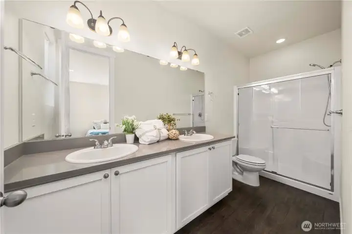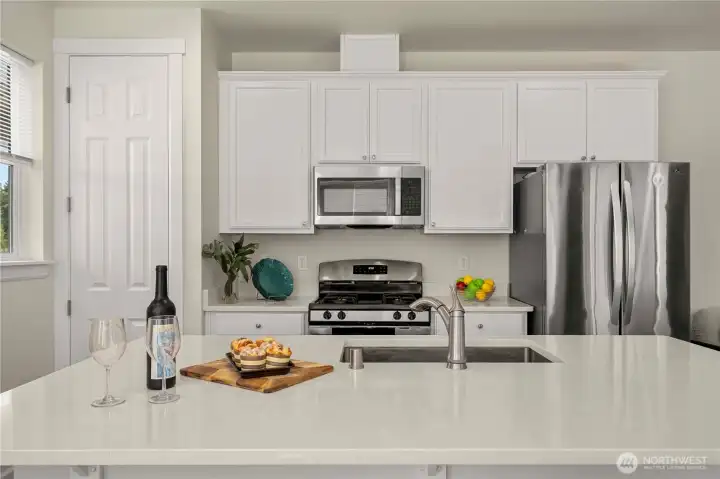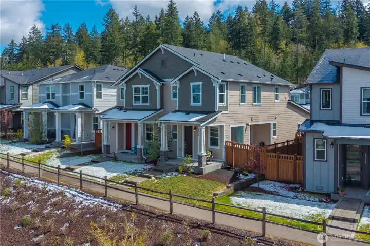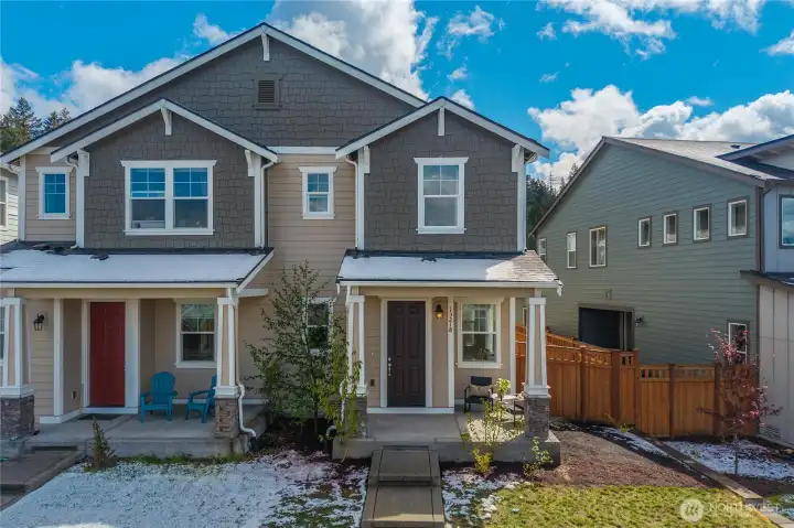 Stunning Richmond American Homes resale! The main floor of the beautiful Chicago plan offers soaring high ceilings, crisp white millwork, and oversized interior doors, creating an airy and upscale ambiance. Entertain with ease in the open-concept living and dining areas, or whip up gourmet meals in a well-appointed kitchen boasting quartz countertops, a large island, and a spacious pantry. The signature center-meet doors transition seamlessly to a private covered patio perfect for morning coffee or year-round BBQs, while the covered front porch offers a serene territorial view. Upstairs, retreat to a luxurious primary suite with a walk-in closet, alongside two additional bright bedrooms, a full bathroom, and a convenient laundry area. Complete with a 2-car garage. Situated in the top-rated Sumner-Bonney Lake School District, this home puts you minutes away from ALL that Tehaleh has to offer, from 40+ miles of trails and parks to local dining, playgrounds, shopping, and so much more!