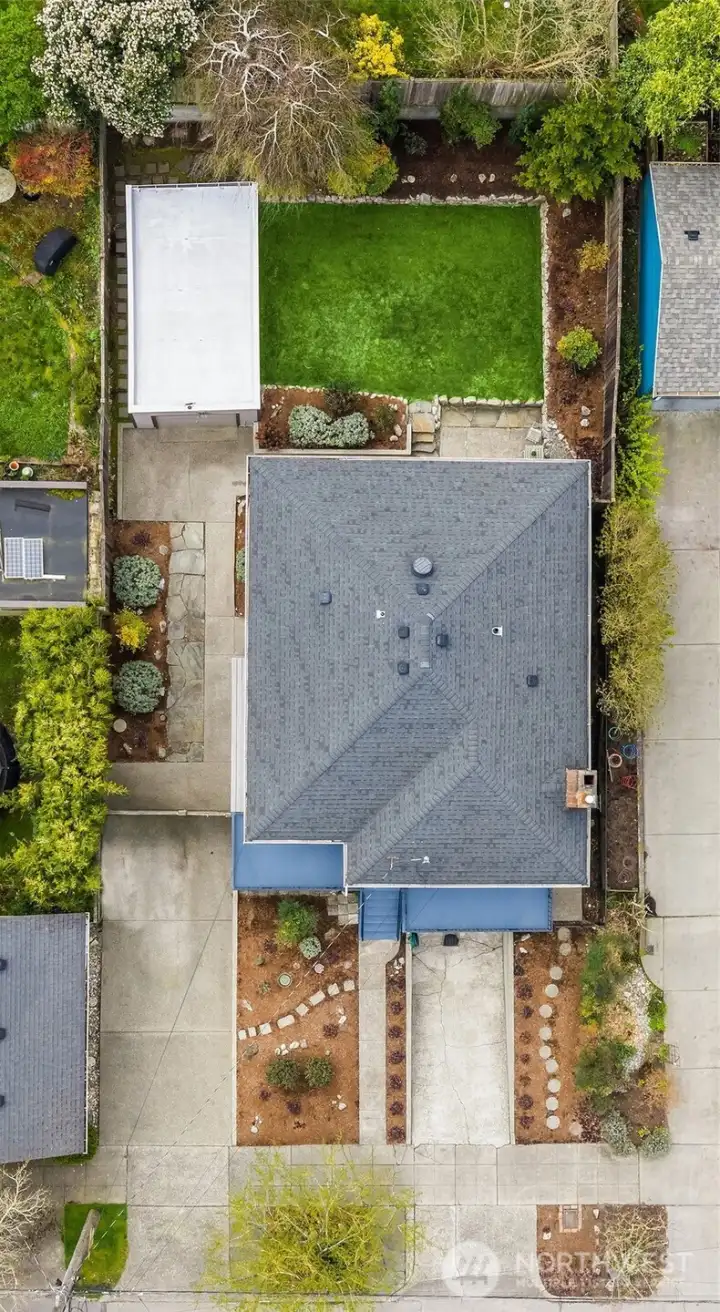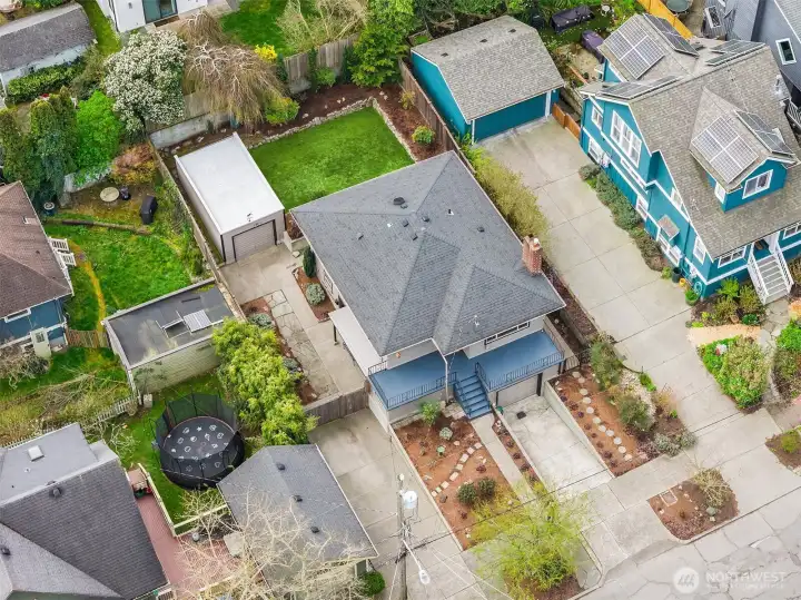 A truly move-in ready house in a quintessentially Seattle location, with unmatched potential to expand into your forever home down the road (see seller-provided feasibility reports for building a DADU and adding a story). Enjoy the functionality of an open-plan mid-century layout and three full-sized bedrooms along with Craftsman-style accents added during the seller's 2009 remodel. Outside, relax in the sun-drenched and fully fenced backyard with lots of garden areas. The daylight basement apartment is one of the best you’ll find, with sunlight on 3 sides and a private entrance with no access stairs; treat it as part of the house, use it as an unparalleled multigenerational living setup, or rent/Airbnb it for extra income. The house is well situated on the lot to provide a sense of space between you and your neighbors, with an abundance of storage thanks to two driveways and two garages (one attached, one detached); and don’t miss the bonus room off of the attached garage, which has its own exterior entrance and could be converted to a home office with some easy updates or would make a great home gym or Costco pantry as-is. Walk 0.3 miles to Green Lake, 0.4 miles to downtown Phinney or Woodland Park Zoo, 0.7 miles to PCC, or 1 mile to West Woodland Elementary; bike 1.5 miles to Wallingford, 2 miles to Roosevelt light rail or downtown Ballard or Fremont, or 3.2 miles to UW campus; and catch the E line 1.5 blocks away or drive to 99 in less than a minute or I-5 in 7 minutes.