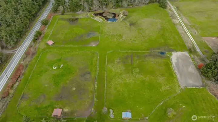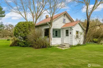Whimsical Whidbey Island Equestrian Estate on shy 11 acres. The moment you pass through the gates, everything shifts. The noise fades, the pace slows, and you can’t help but feel like you’ve arrived somewhere special. The 2,579 sq ft Craftsman main home, remodeled by Yonkman Construction, blends timeless charm with modern comfort, featuring sweeping natural light and expansive views from nearly every room. Recent updates include refinished real oak floors, fresh interior and exterior paint, new carpet, new roof and a newly completed back deck. The upper level offers two spacious bedrooms, including a standout primary suite with walk-in closet and attached bathroom, while the third-story retreat captures stunning panoramic views. A classic enclosed sunroom frames picturesque farmland, pond, and mountain vistas. The property offers exceptional versatility with a 1913 two-bedroom guest cottage, plus a separate studio guest quarters, both with a strong Airbnb rental history, and a heated workshop perfect for a home office or art studio. Equestrian amenities include a 62' x 38' Spanish-inspired barn with 6 European stall fronts, wash bay, grooming area, hay loft, tack room, an outdoor riding arena and loafing sheds in acres of fenced pastures. Mature landscaping, lavender garden, pond, vegetable garden space, and chicken coop round out a perfect country setting. Previously used for weddings and gatherings, this is a rare opportunity to own a truly magical and historic property.