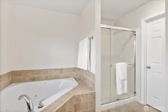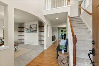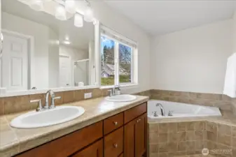 Tucked into the desirable Hidden Ridge community, this 4 bed/2.5 bath home offers comfort & functionality for everyday living, plus a beautifully landscaped yard—perfect for relaxing or entertaining. The main level features an open-concept kitchen, eating nook and living area, along with formal living & dining rooms for added flexibility. The kitchen is a chef's dream- stainless appliances, including double oven, generous counter space, soft close cabinets with pull outs + additional pantry space. Extra seating around large kitchen island. Gas fireplace and built in entertainment shelves in living area, built in shelving in formal living room. Upstairs, you’ll find a spacious primary suite with walk-in closet, 5-piece ensuite bath with jetted soaking tub and skylight. Three additional bedrooms, remodeled full hall bath, and huge bonus room makes a fantastic flex space for a media or game room, hobbies and more! Laundry room with utility sink, plenty of working room and storage, multiple linen closets and a walk-in storage closet round out the upper level. Refinished hardwoods and new carpet throughout! The backyard is truly a retreat! Large paver patio to enjoy the peaceful backyard and mature landscaping. Plumbed for propane! Gated access with drive thru gate and parking down the side. 3 car garage + storage shed! Nearly half an acre to enjoy! Ideally located on a cul-de-sac in a quiet community, just minutes to shopping, dining & commuter routes. This home truly has it all!
