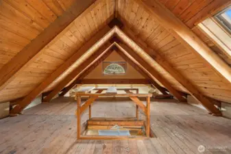 On Bainbridge Island’s coveted south end, opportunity doesn’t always announce itself, it invites imagination. Set on a private 2.55-acre parcel filled with natural light, this solid cedar-sided home with metal roof offers a rare chance to shape something truly your own. Thoughtfully designed with wood car decking ceilings, exposed beams, and dual woodstoves that efficiently heat both the main level and primary suite, the home already carries warmth and character at its core. Enter to an open-concept living area and kitchen with stainless appliances and a propane range. A 3/4 bath and versatile utility space create potential for a studio or creative workspace. Upstairs, a generous landing lends itself to reading, relaxing, or play. Double doors lead to the primary bedroom with its own woodstove. A full bath, second bedroom with loft access, and a deck with steps down to the backyard complete the second floor. Above it all, a massive unfinished loft spans both bedrooms—an inspiring blank canvas awaiting your vision. Outside, level lawns surround the home and a large hoop house and greenhouse, once home to bonsai, hint at possibilities for gardening or artistic pursuits. Just minutes from Lynwood Center, Pleasant Beach, and the trails and shoreline of Fort Ward Park, this is more than a home, it’s a chance to create something enduring in a sought-after Bainbridge setting.