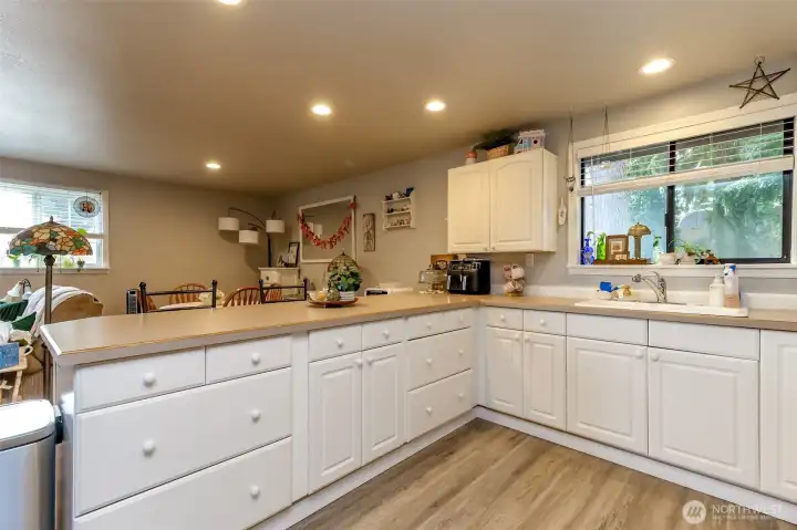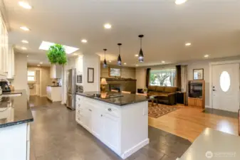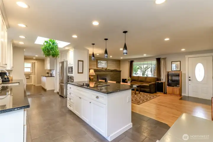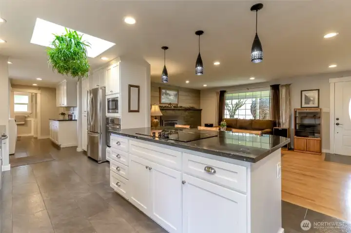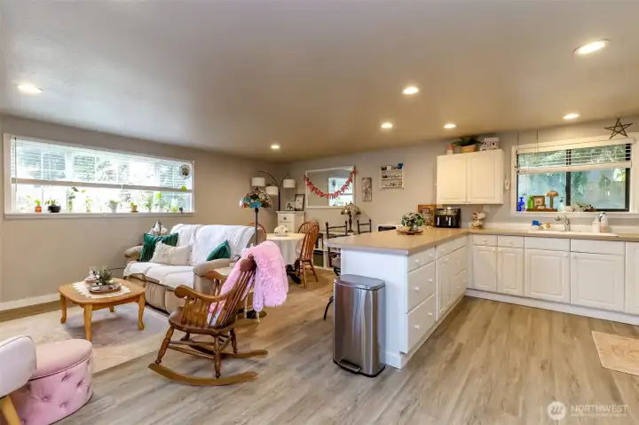 This is a once in a lifetime opportunity to own a stunning property in a highly desirable location. Never been on the market until now, and it shows in every detail. Absolutely gorgeous, fully remodeled, and meticulously maintained with designer choices throughout. Approximately half acre lot offering incredible outdoor spaces and abundant privacy. Inside, the home features bright, sun filled interiors with gleaming real hard wood floors. The living room provides a welcome flow from the moment you step inside, featuring a gorgeous gas fireplace along an entire wall. There are three main-floor bedrooms plus a second- floor primary bedroom just five steps up, offering flexible living arrangements. The remodeled family room features a beautiful gas fireplace making the room cozy, stylish, and ideal for gatherings. It also includes a gourmet, absolutely amazing kitchen with beautiful countertops and cabinets, tile floors an incredible amount of work and storage space, and stainless steel appliances-truly a dream. On the outside, a huge detached shop with finished living space above-perfect for a workshop, studio, or in law suite. A very generous sized 1246 sq. ft. deck overlooks a beautiful yard that is truly a oasis. A greenhouse and chicken friendly space with a dedicated area to nurture your garden dreams. Practical conveniences include RV parking and a covered front porch. This home is a true treasure waiting for it's new owners! Welcome Home!