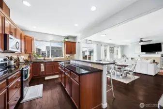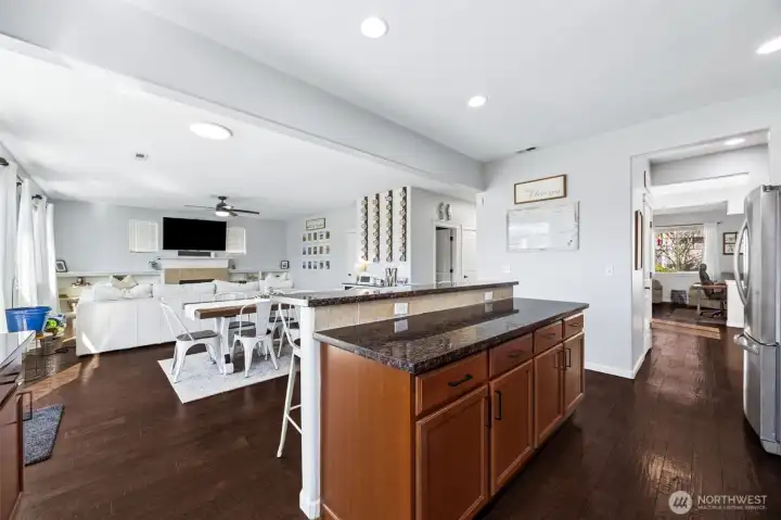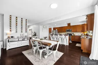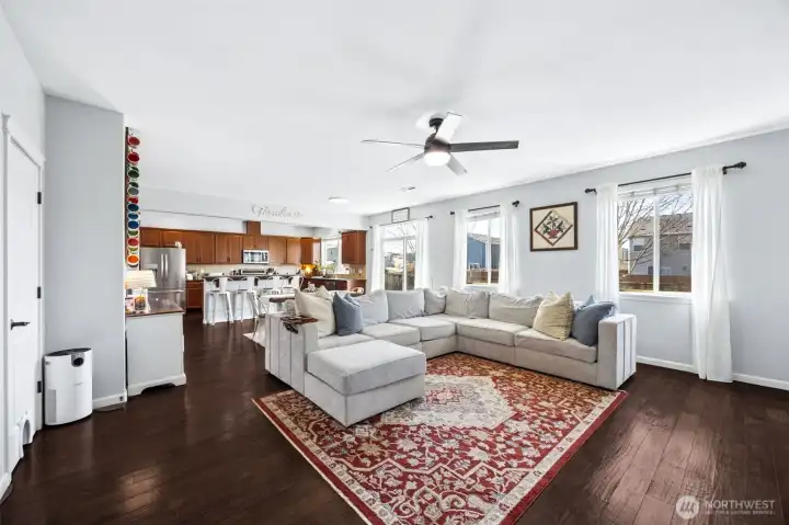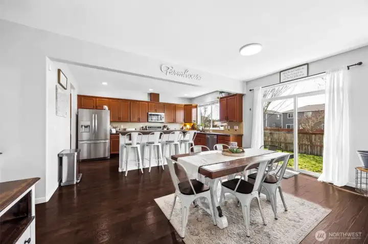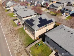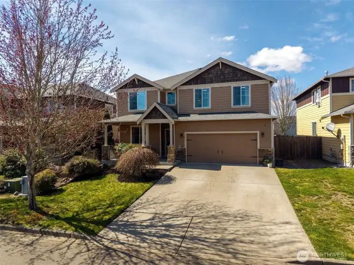 Spacious and desirable home in the sought after Cherry Meadows community of Yelm. Offering 3,118± sq ft with 4 bedrooms, a large loft, and 2.5 baths, this two-story home provides ample space for comfortable living, entertaining, and working from home. The main level features an open-concept layout with a bright and inviting living area, a well-designed kitchen with a large island, granite slab countertops, stainless steel appliances, a walk-in pantry, and a stylish butler’s bar—perfect for hosting gatherings. Enjoy year-round comfort with a forced air furnace and heat pump providing efficient heating and A/C, along with the added value of a solar panel home upgrade. Upstairs, you’ll find a spacious primary suite with plenty of natural light, a walk-in closet, and a five-piece bath, along with three additional generously sized bedrooms, a versatile loft, a full bathroom, and a convenient laundry room. Step outside to a fully fenced backyard, ideal for entertaining, relaxing, or play, with plenty of space to make it your own. The attached 2-car garage includes a third bay, perfect for extra storage, a workshop, or hobby space. Located in a quiet neighborhood with convenient access to JBLM, Yelm Highway, shopping, and local amenities, this home offers the perfect combination of space, efficiency, and everyday comfort.
