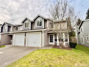 Enjoy the low maintenance condo lifestyle in this end unit condo in Country Club Garden with 3 bedrooms plus den. Home features a main floor primary suite with vaulted ceiling and large walk-in shower. Spacious living and dining room with gas fireplace, plus kitchen with dining nook round out the main floor. Newer laminate hardwood flooring through most of the home on both levels and tile in the kitchen and bathrooms, the only carpet is on the stairs. Upstairs you'll find 2 guest bedrooms, a bathroom with tub and shower, and a den or office. Updated ductless heat pump mini split system provides heating and cooling, and the home has been outfitted with whole home surge protection. Fenced outdoor patio space with a gate to the greenbelt and access to the Chehalis Western Trail. 1 car garage plus driveway parking, and additional guest parking right across from the home. Community clubhouse with game room and community events, plus William Bush Park right around the corner.