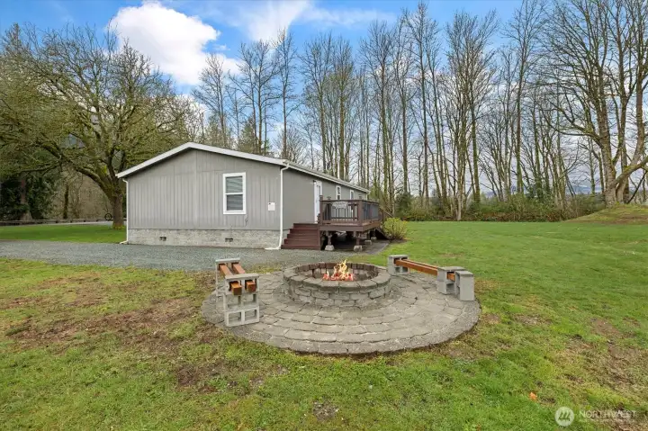 Meticulously maintained 3BR/2BA manufactured home on 0.54 acres bordering approximately 100 acres of neighboring non buildable open space, creating a uniquely open setting with added privacy and natural surroundings. Move-in ready with fresh paint and thoughtful updates throughout. Heat pump with A/C for year-round comfort. Detached 2-car garage with additional shop space plus multiple driveways and parking areas offer excellent flexibility for hobbies, vehicles, or guests. Relax around the outdoor fire pit and enjoy a peaceful country setting with nearby river views. Home sits on a slab foundation with upgraded concrete block skirting. Located just minutes from Birdsview Brewery, Skagit River fishing, hiking trails, Rasar State Park, and easy access to the North Cascades Highway. Septic system and no HOA, and not located in the floodplain.