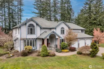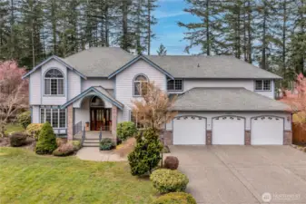 This home is rich in classic traditional character and sits on a sprawling acre of possibility. The 2-story covered front porch creates an elegant and welcoming entrance, leading into vaulted ceilings and a sweeping curved staircase. Encompassing 3,539 sq ft, the home unfolds with formal living and dining rooms, a warm, sunny family room and a sunlit kitchen with cheerful breakfast nook. A main-level bedroom with 3/4 bath adds flexibility. Upstairs offers 3 additional bedrooms, including the primary suite- complete with a 5-piece bath, sunlit Jacuzzi tub, walk-in closet, and balcony overlooking the backyard. The upper level also includes an office/den, full bath, laundry, and an enormous bonus room, complete with plumbing for a bar or kitchenette and a rear staircase leading back down to the family room. With updated roof and siding already in place, this home is a remarkable canvas, ready to be transformed into a true stately home. Backing to the new Naches Elementary, the fully fenced grounds include 2 sheds - one with a roll-up door - and a spacious 3-car garage with storage and workbenches. Suncrest Estates is a private dead-end street of homes, each on half to one acre parcels, and no HOA. A rare opportunity to revive and re-imagine a home of this scale and presence.